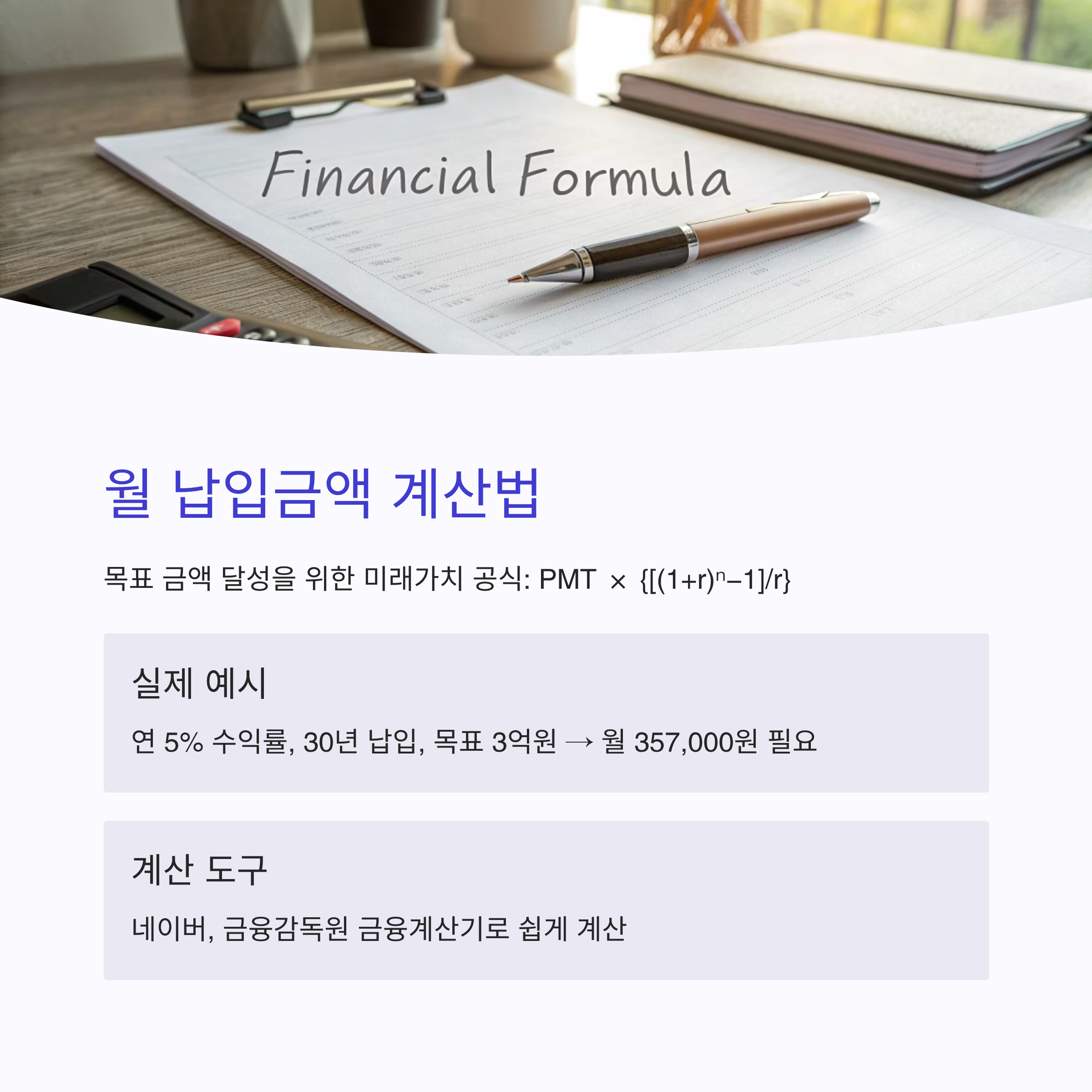 월 납입금액 계산 공식과 예시