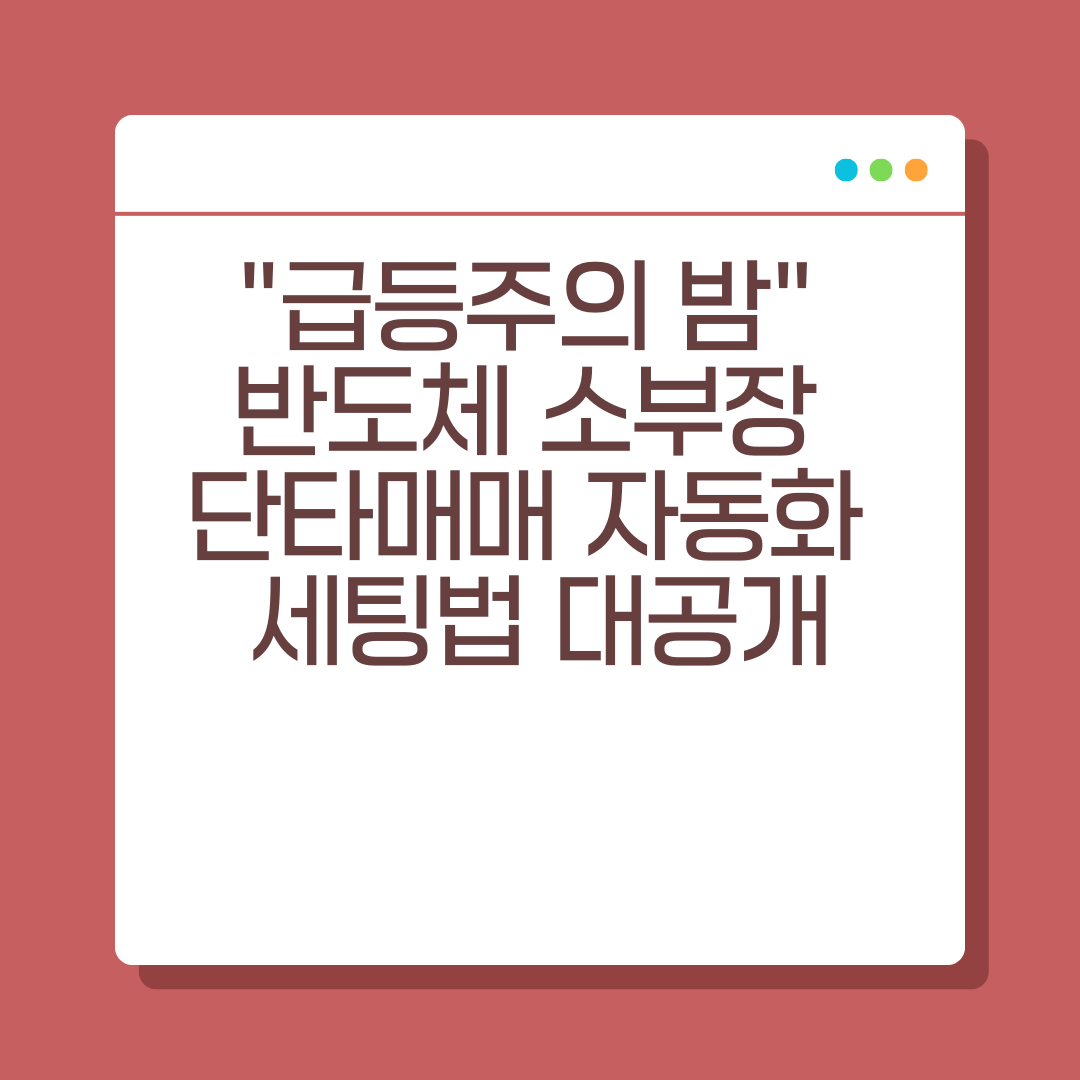 지난 1주일간 급등주 중심으로 움직였던 반도체 소부장 섹터에서 야간 뉴스 기반으로 단타 수익을 낼 수 있는 자동화 세팅 방법을 소개합니다. 실시간 종목 필터링부터 조건검색 자동화, 뉴스 기반 매매까지 흐름을 잡아드리며, 구체적인 버튼 배치 및 툴 연결 팁도 제공합니다.
