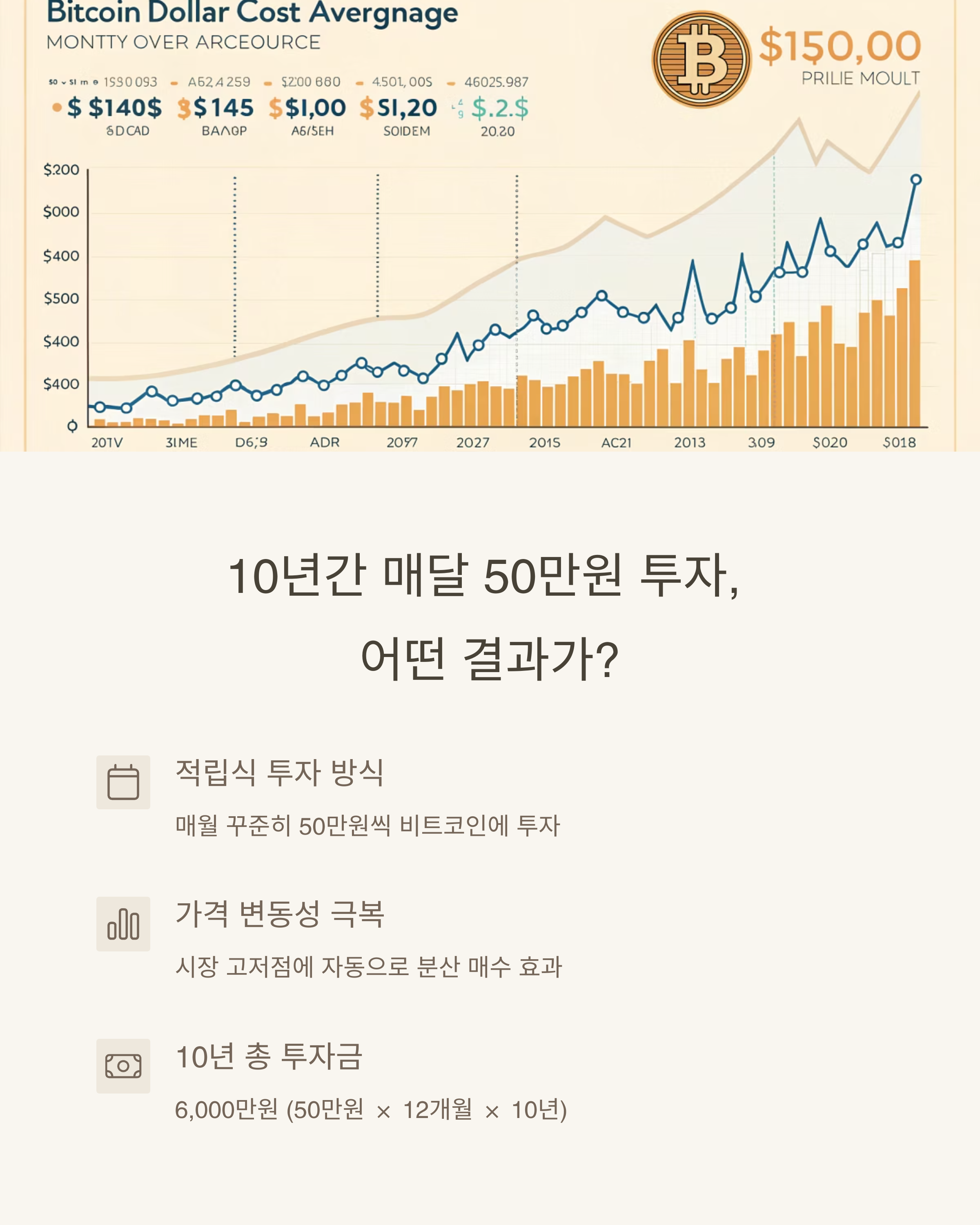 10년 동안 매달 50만원씩 비트코인을 매수했다면, 총 투자 금액은 6000만원이 됩니다.