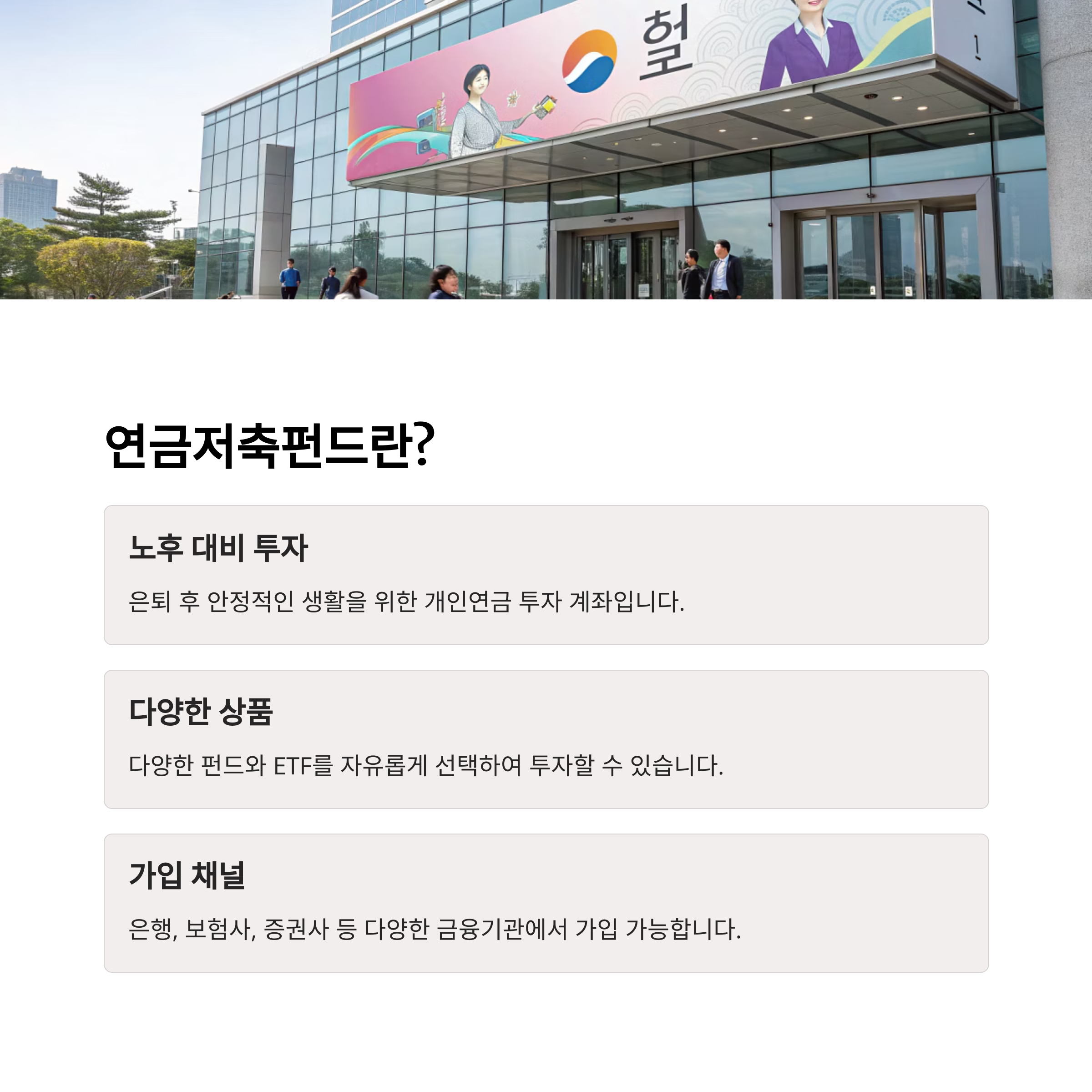 연금저축펀드는 개인이 노후 준비를 위해 가입할 수 있는 장기 투자 상품입니다