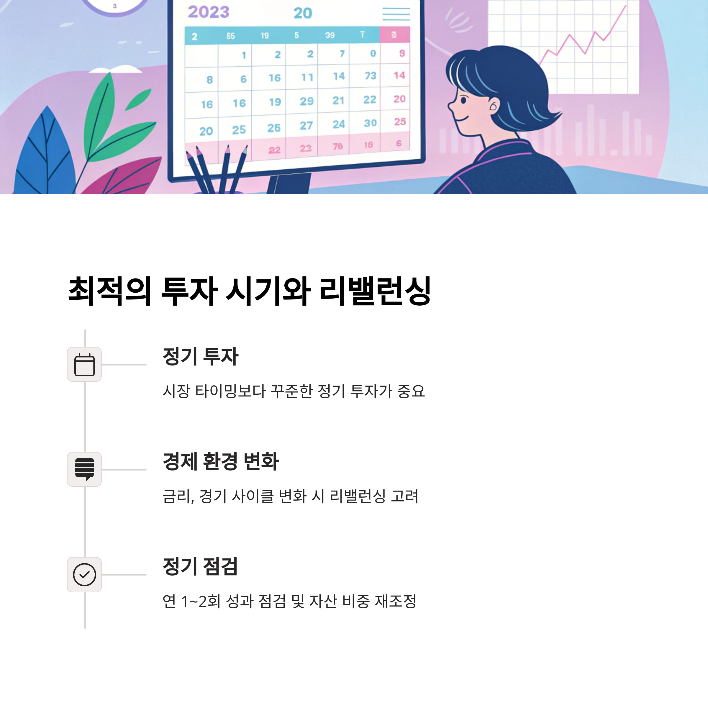 시장 상황이 바뀌면 내 자산 비중도 달라져야 합니다. 6개월에 한 번은 점검해 주세요 - 셋째, 낮은 보수와 꾸준한 납입을 실천하세요