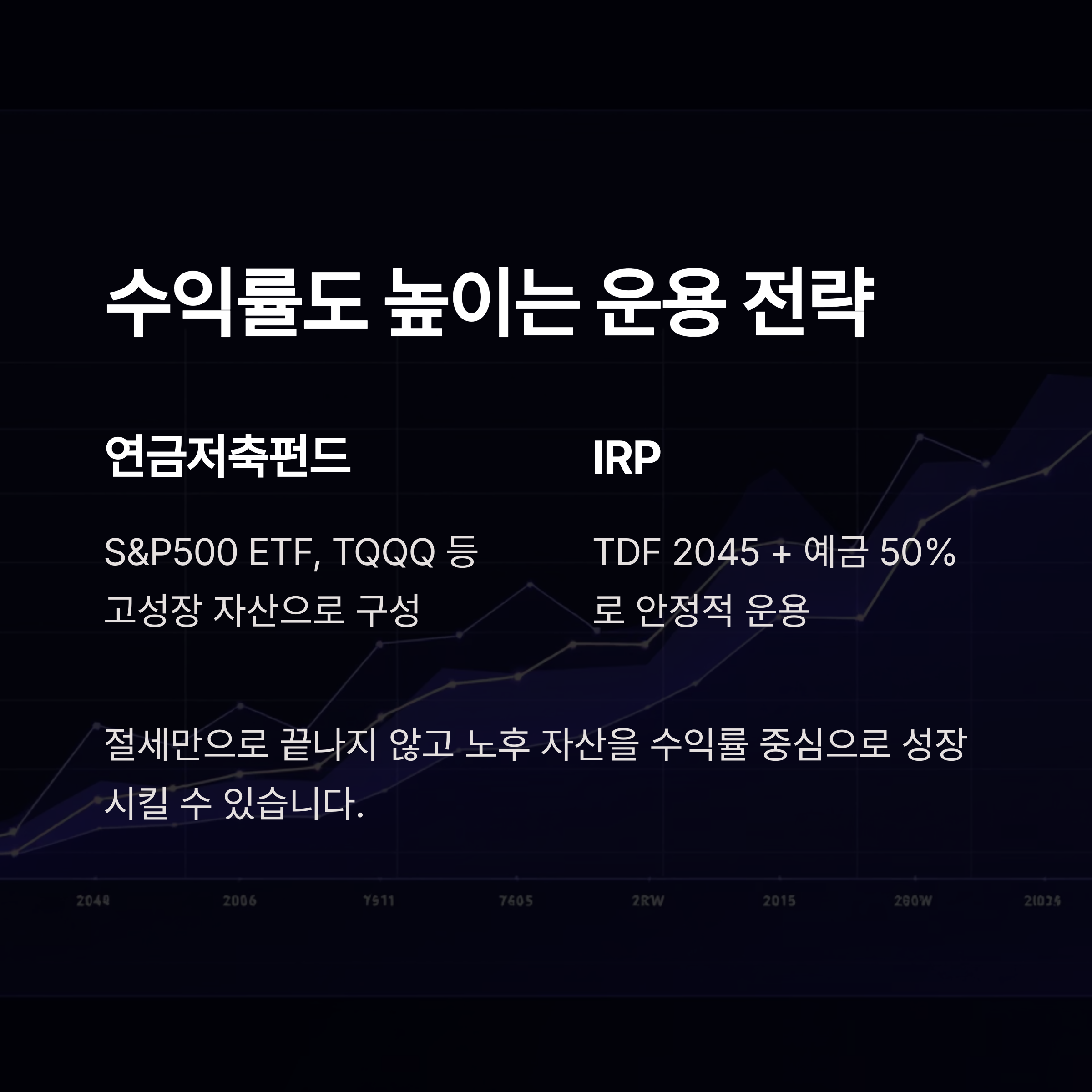 운용 방법에 따라 노후 자산을 수익률 중심으로 성장시킬 수도 있습니다.