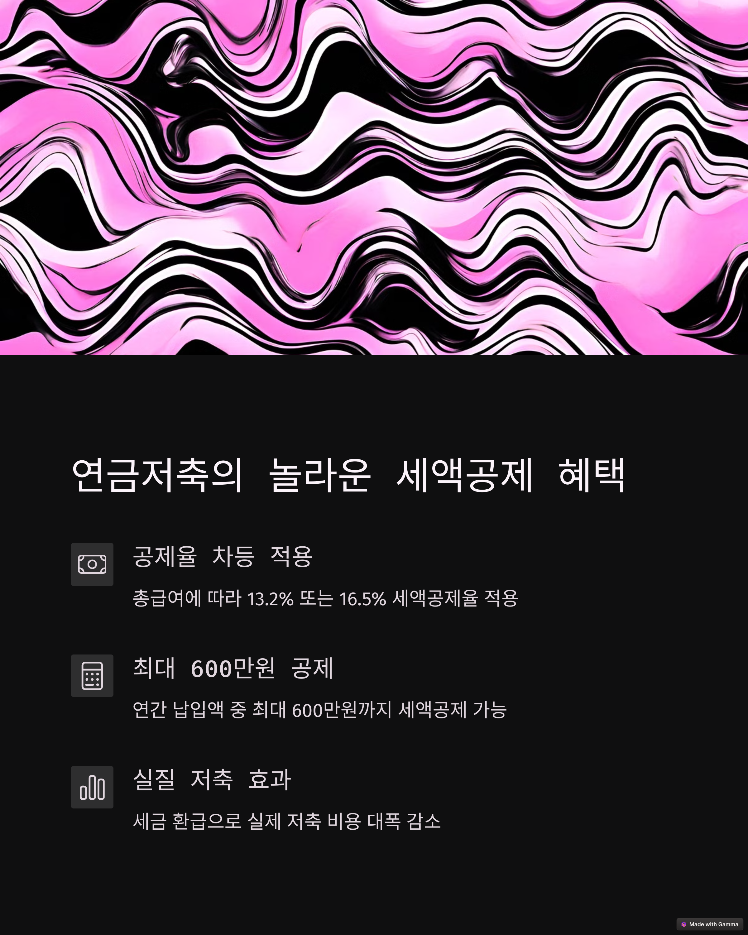 | 연금저축이란? | 노후 대비용 금융상품으로, 세액공제 혜택과 연금 수령 기능이 결합된 제도입니다. |