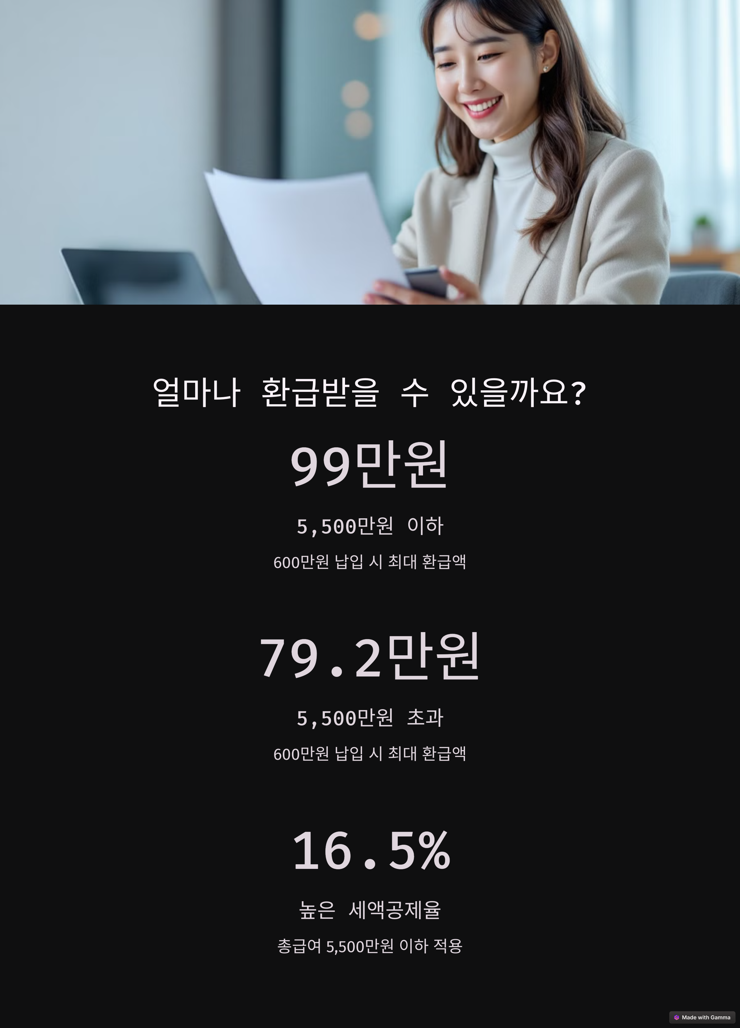 | 세액공제란? | 납부한 세금에서 일정 금액을 빼주는 제도로, 환급 효과가 큽니다. |