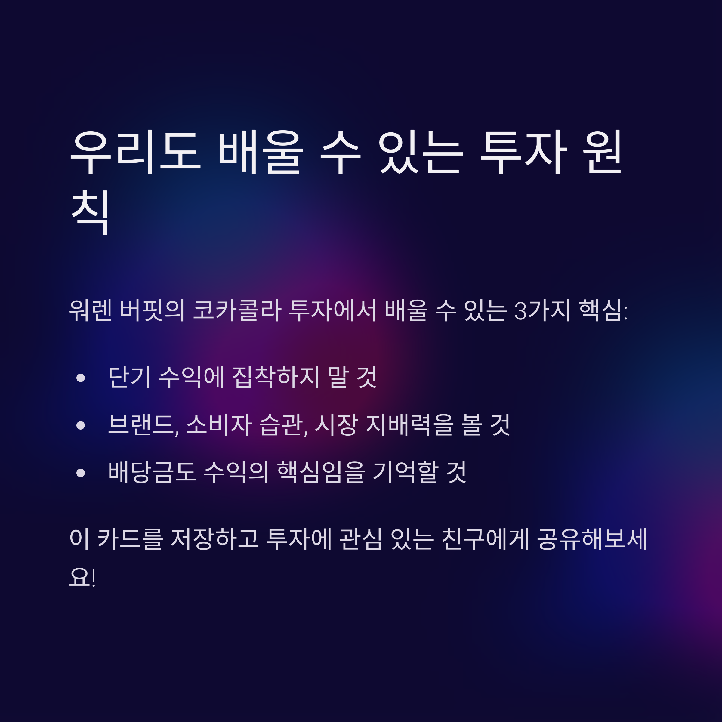 워렌 버핏의 이 말은 코카콜라 투자에 정확히 들어맞습니다.