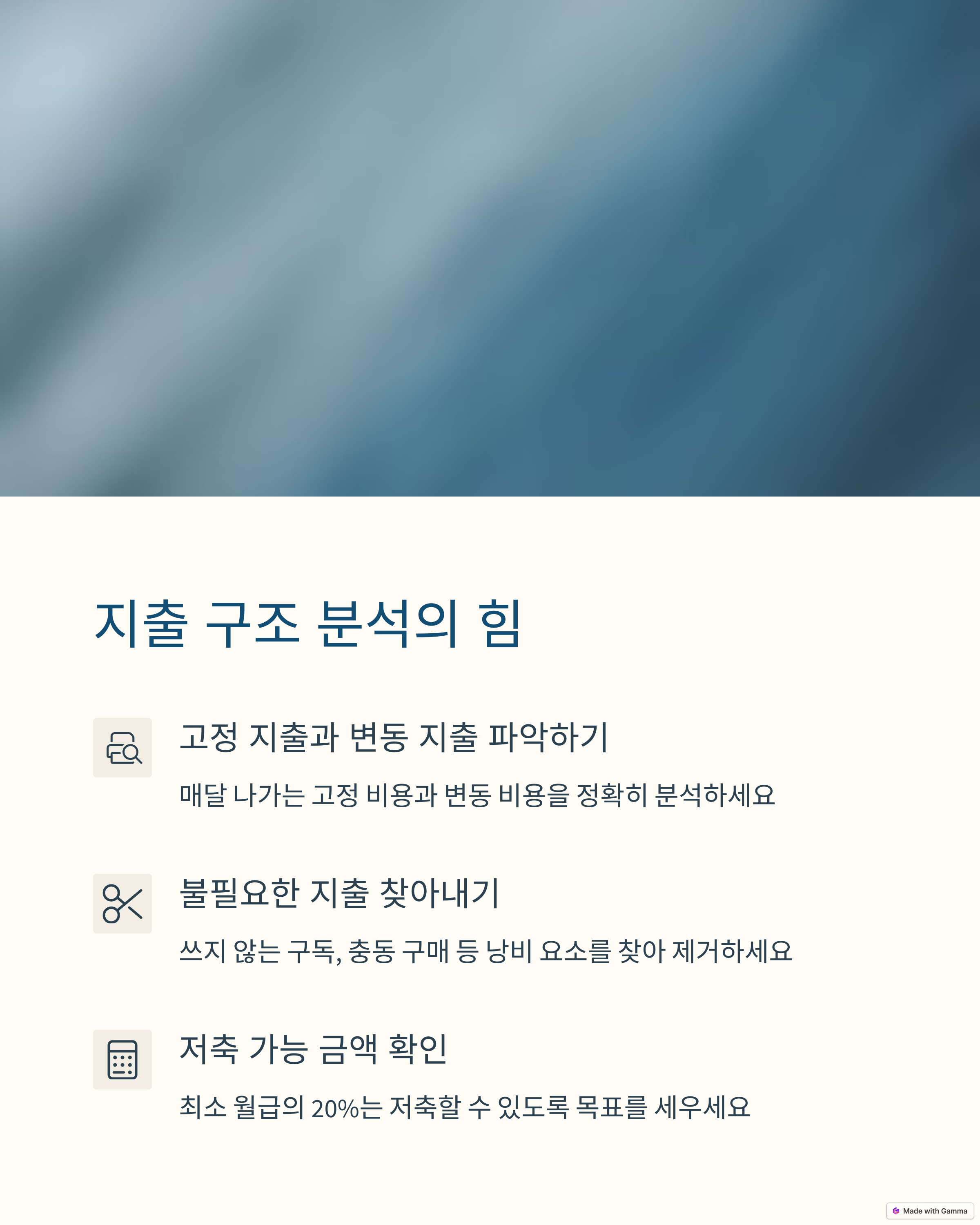 | 자산을 키우는 첫걸음 | 지출 구조 분석과 자동 저축 설정부터 시작하세요. |