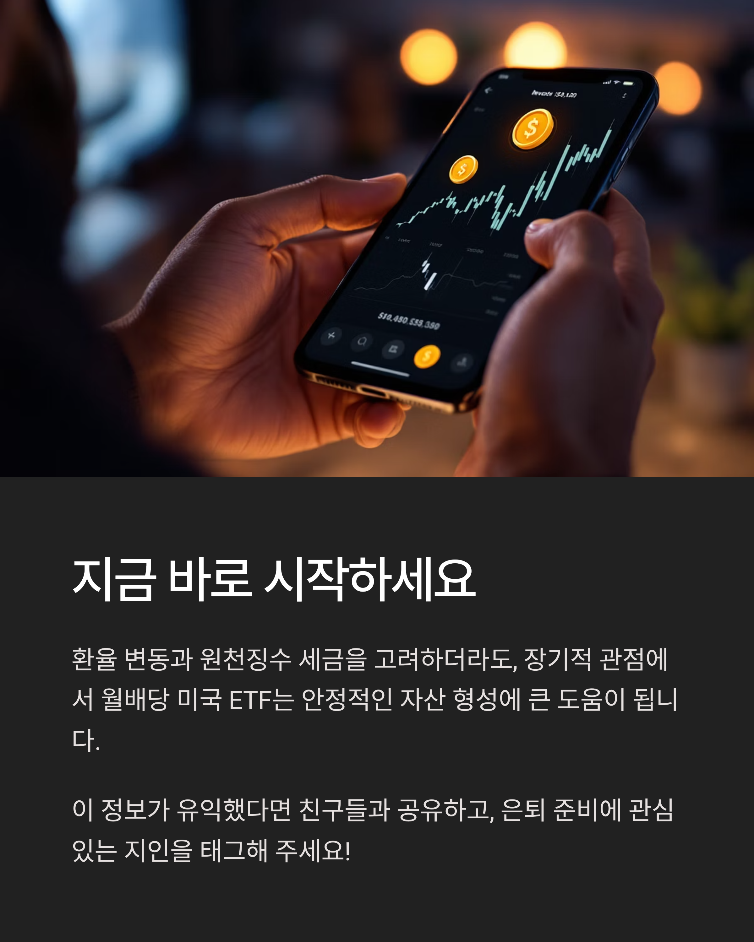 지금까지 월배당 미국 ETF에 대한 실제 투자 경험과 수익률을 소개드렸습니다. 단기 수익을 쫓기보다 장기적인 관점에서 안정적인 배당 수익을 기대할 수 있다는 점은 이 투자 방식의 가장 큰 장점입니다. 특히 투자 초보자라도 어렵지 않게 시작할 수 있으며, 복리 효과를 활용하면 매년 수익이 눈에 띄게 증가하는 경험을 하실 수 있습니다. 월마다 배당이 들어오는 알림을 확인할 때의 만족감은 그 어떤 투자보다도 실감나는 보상입니다. 여러분도 이번 기회에 장기적인 자산 구축 수단으로 월배당 ETF를 고려해 보시길 바랍니다.