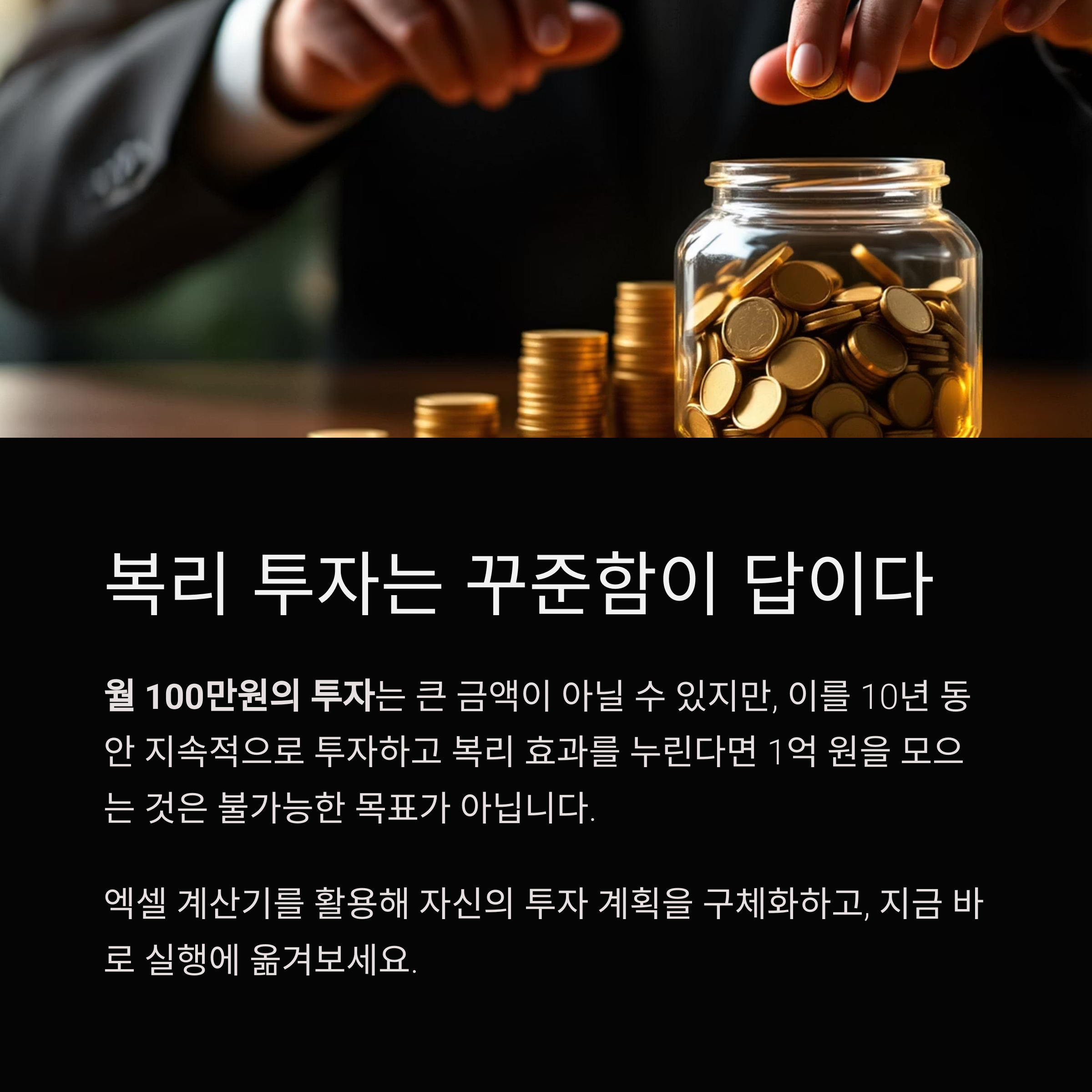 이 글에서는 월 100만원의 꾸준한 투자로 10년 내 1억을 모으는 방법을