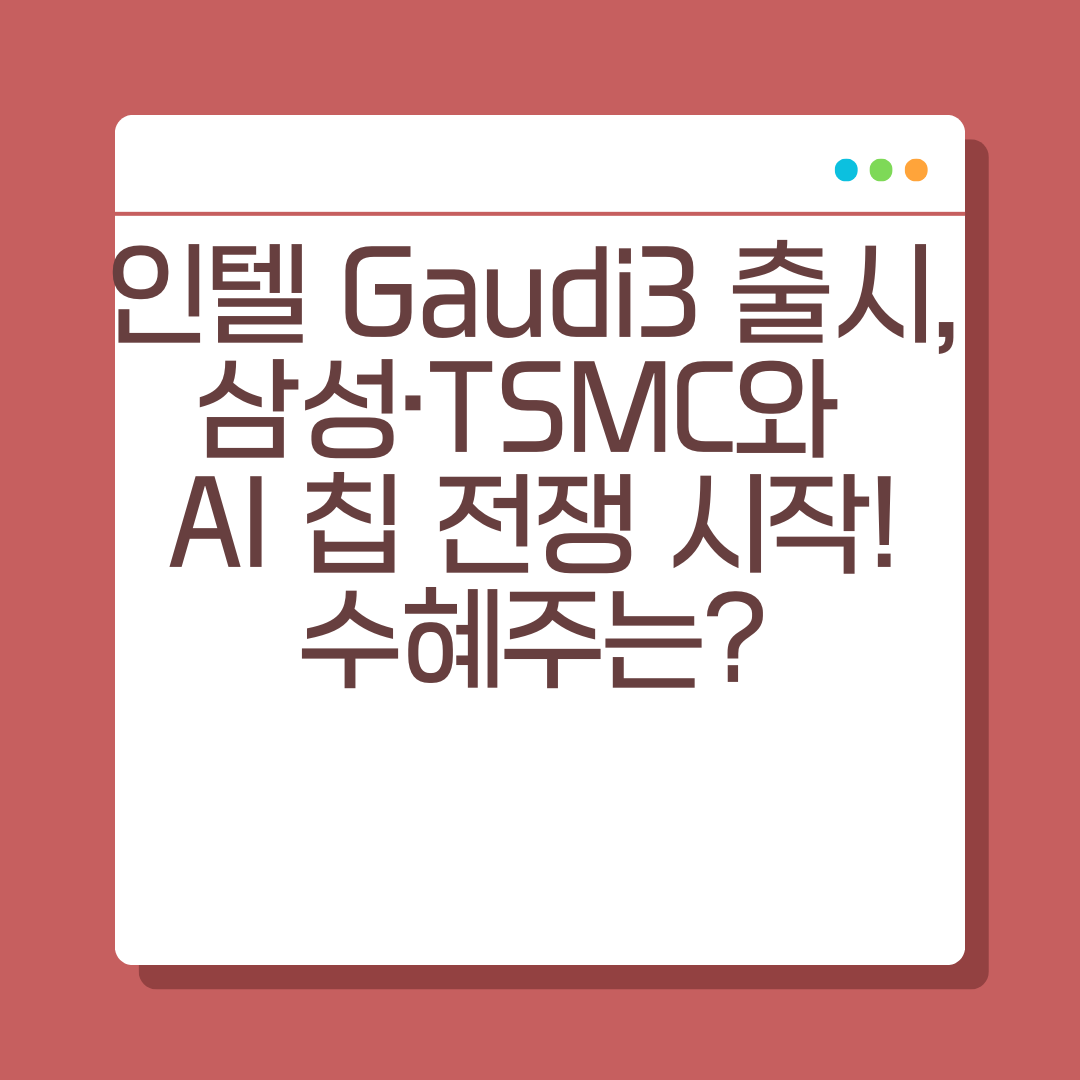 인텔이 AI 전용 가속기 Gaudi3를 전격 출시하며 엔비디아에 맞서 본격적인 AI 반도체 전쟁에 뛰어들었습니다. 이에 따라 글로벌 파운드리 시장의 두 축인 삼성전자와 TSMC가 Gaudi3 수탁 생산 물량 확보 경쟁에 돌입했는데요. 인공지능 시대의 핵심 인프라로 떠오른 AI 반도체 시장에서 이번 발표가 가져올 국내외 주식시장 파장은 매우 클 것으로 예상됩니다. 관련 수혜주 및 핵심 포인트를 정리해 드립니다.