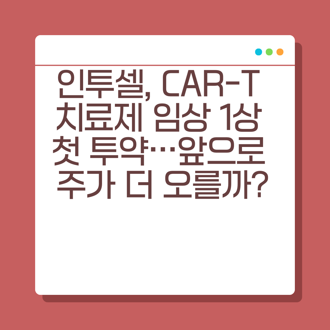 인투셀이 CAR-T 치료제 공동연구를 본격화하며 임상 1상 투약을 시작했습니다. 이에 따라 주가는 장중 한때 11% 이상 급등하는 모습을 보이며 투자자들의 관심이 집중되고 있습니다. 향후 임상 결과와 기술이전 가능성, 글로벌 시장 진출 여부까지 주목할 요소가 많습니다. 본 글에서는 이번 임상 투약의 의미, 주가 영향, 그리고 향후 전략적 포인트까지 빠짐없이 짚어보겠습니다.