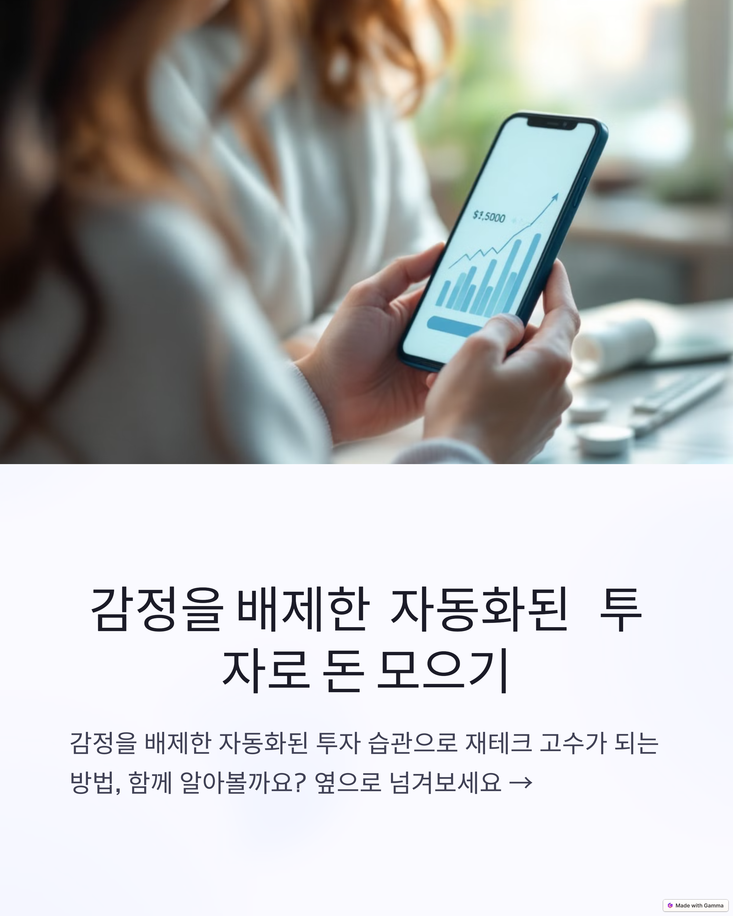 우리는 누구나 돈 걱정 없는 삶을 꿈꿉니다. 하지만 현실은 다르죠. 늘 부족한 월급, 예기치 않은 지출, 그리고 불확실한 미래까지. 이런 상황 속에서도 꾸준히 자산을 늘려가는 사람들이 있습니다. 그들은 특별한 수입원이 있는 것도 아니고, 복권에 당첨된 것도 아닙니다. 단지 투자 루틴을 만들고 그것을 지키는 것만으로도 놀라운 결과를 만들어내고 있죠. 자동화된 투자 시스템은 그들의 무기입니다. 수동적인 자산 증식에서 벗어나, 능동적으로 미래를 준비하는 방법. 이 글에서는 실제 사례와 함께, 누구나 따라 할 수 있는 돈 모이는 루틴을 소개합니다. 이제 복잡한 재테크는 그만. 일상 속에서 자연스럽게 돈이 모이는 진짜 방법을 알아보세요.