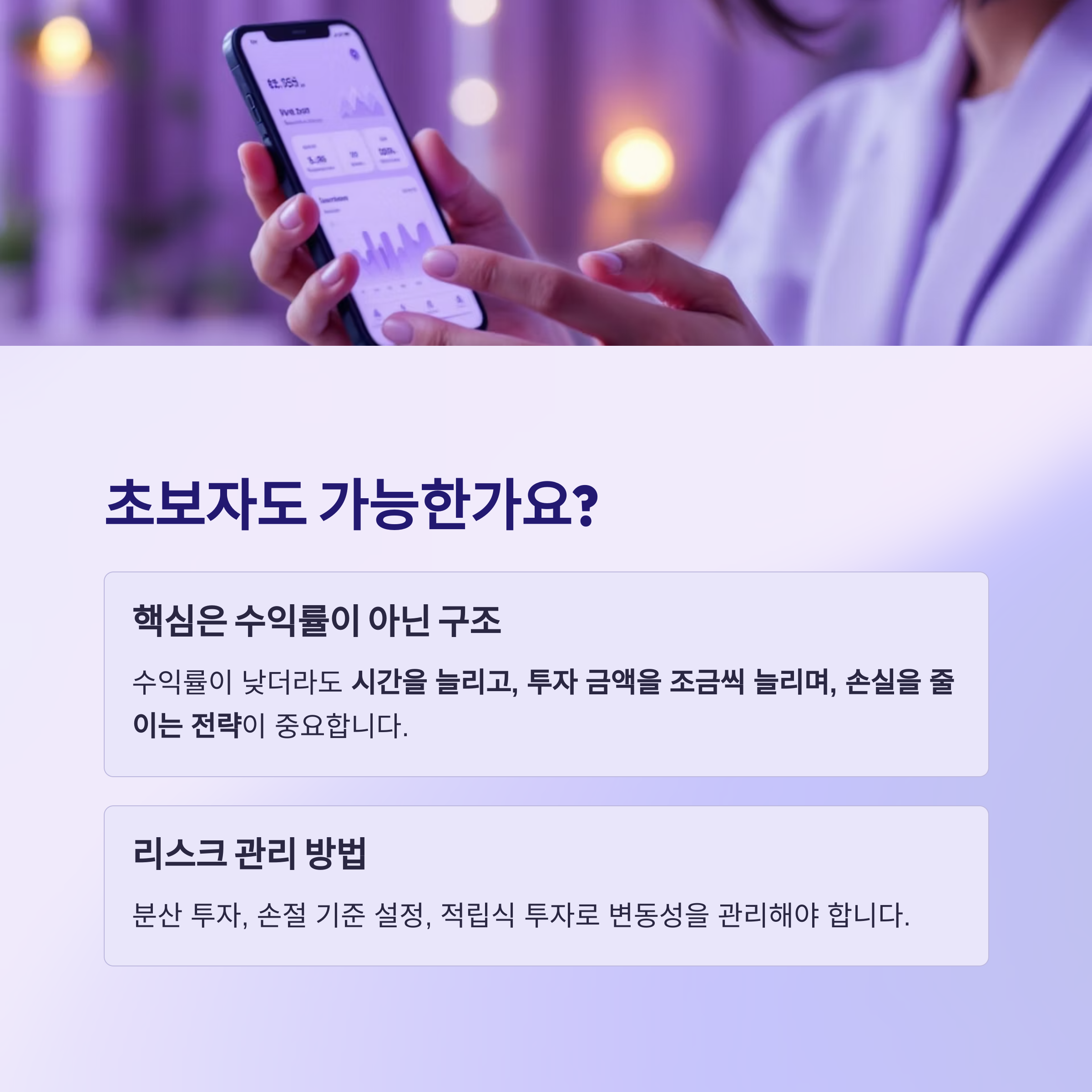 → 분산 투자, 손절 기준 설정, 적립식 투자로 변동성을 관리해야 합니다.
