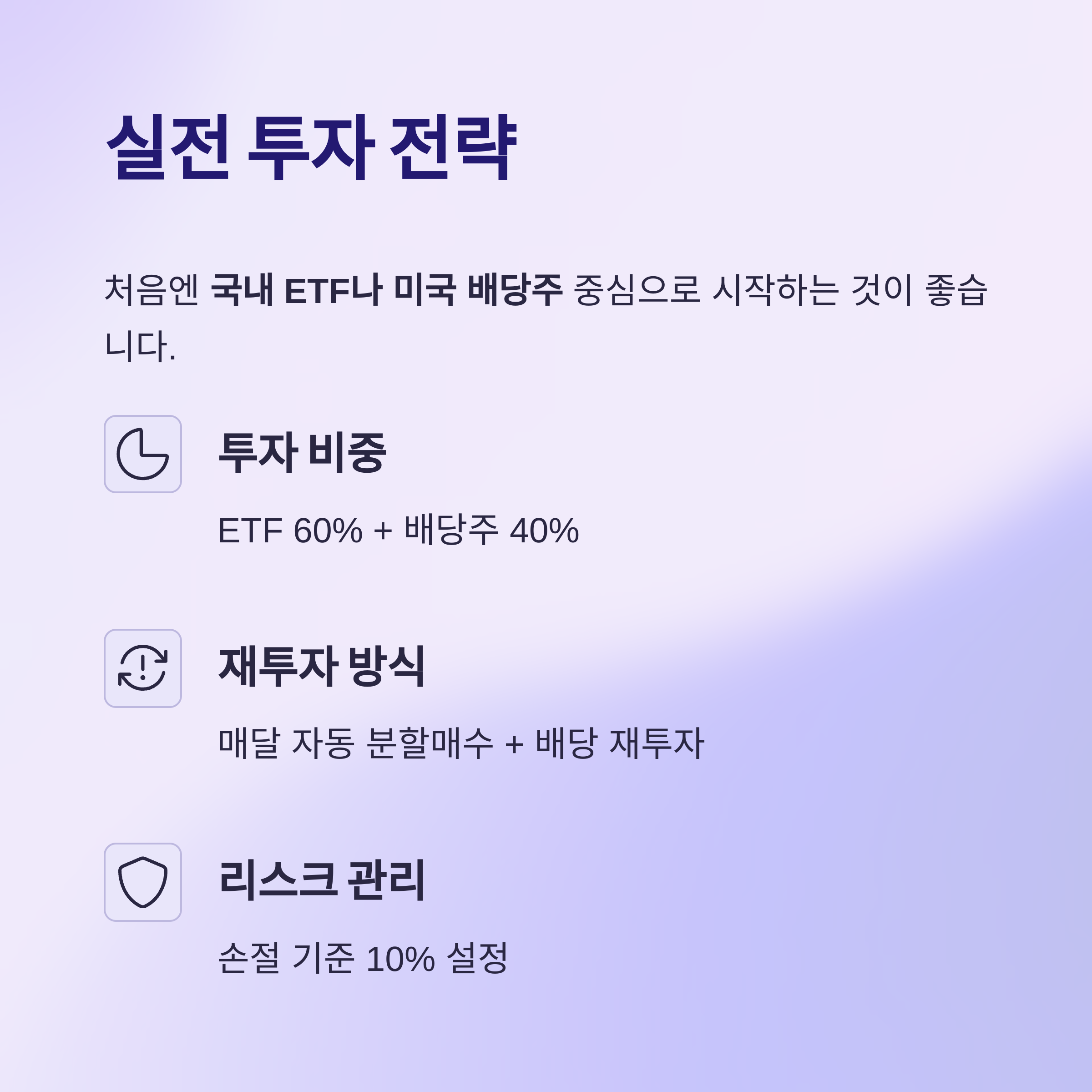 | 투자 비중 | ETF 60% + 배당주 40% |