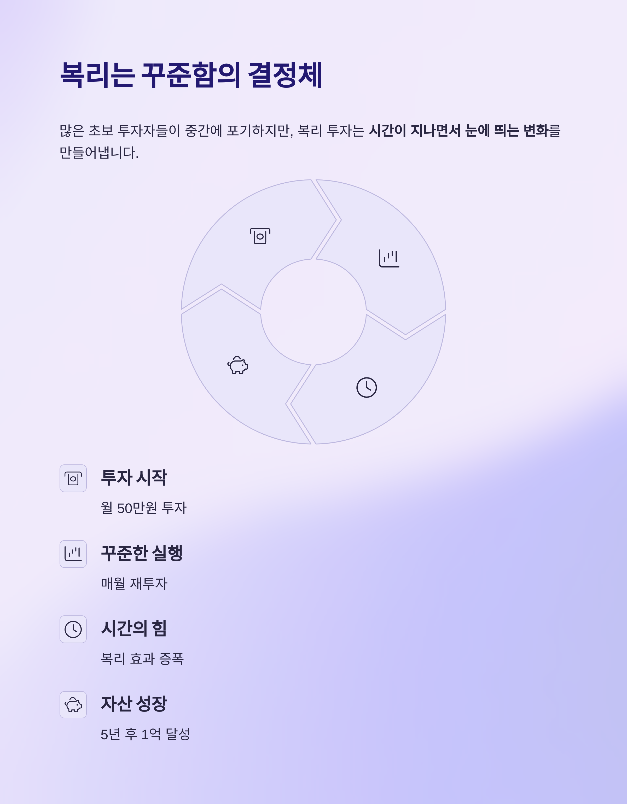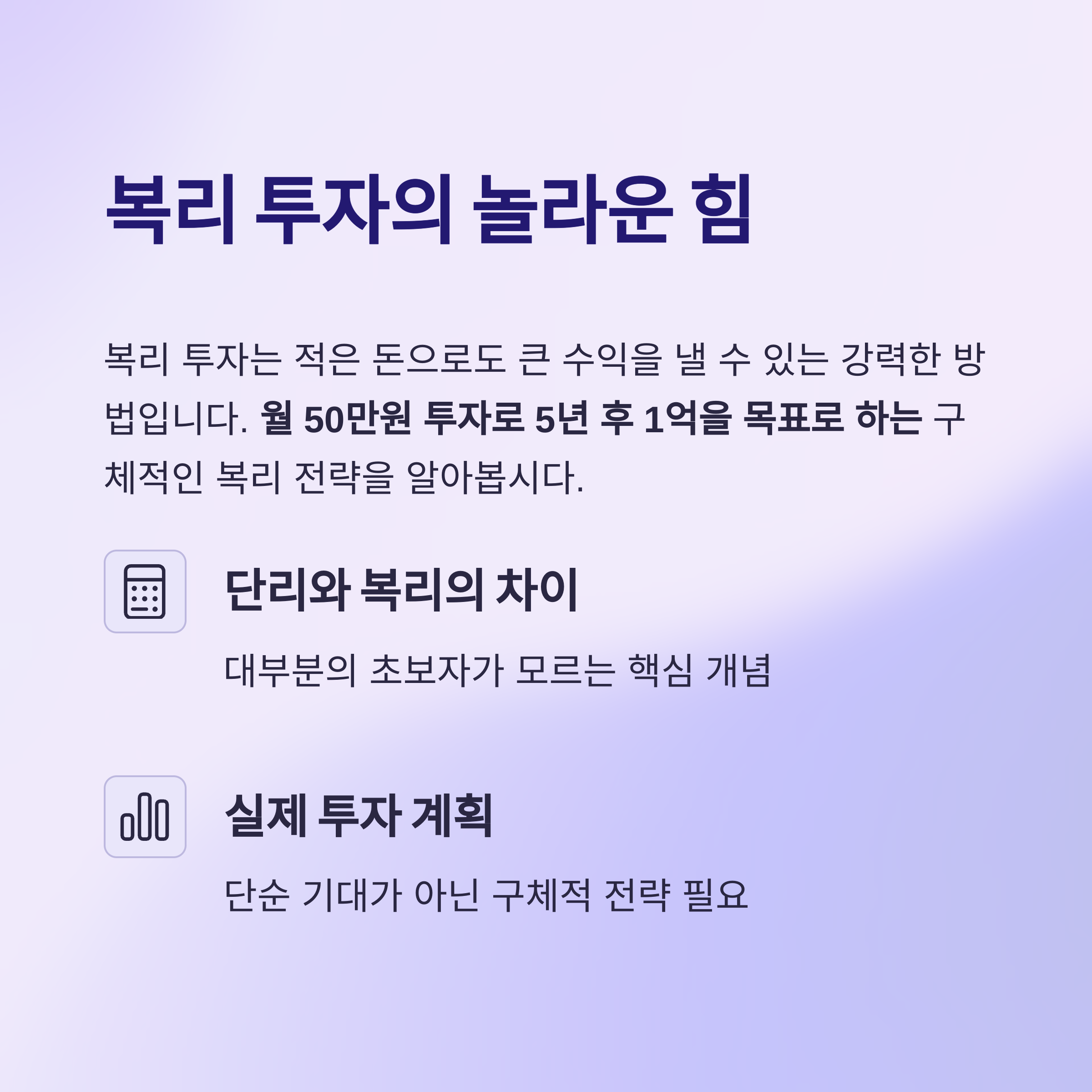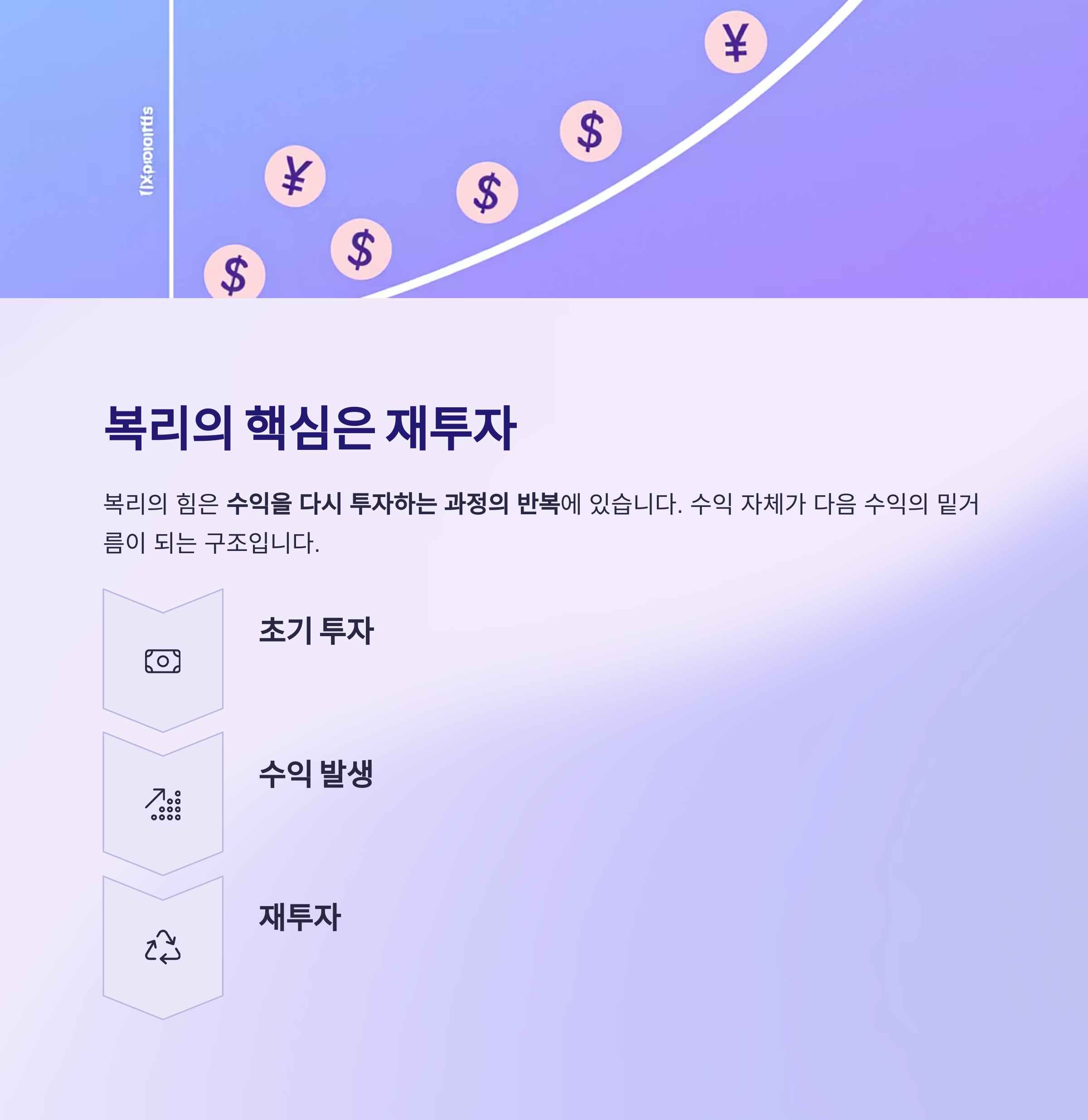 복리의 힘은 "수익을 다시 투자하는 과정의 반복"에 있습니다.