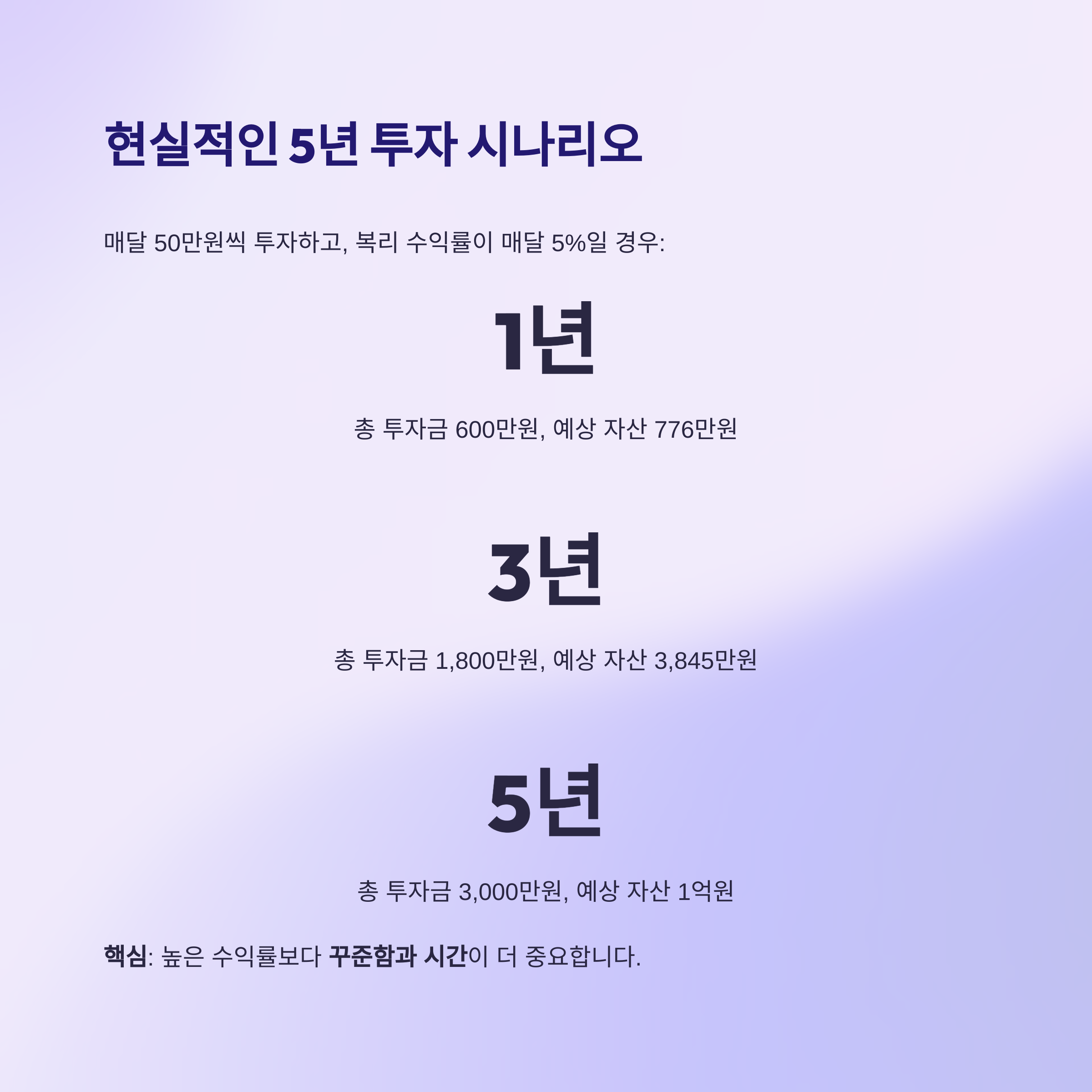 핵심: 높은 수익률보다 꾸준함과 시간이 더 중요합니다.