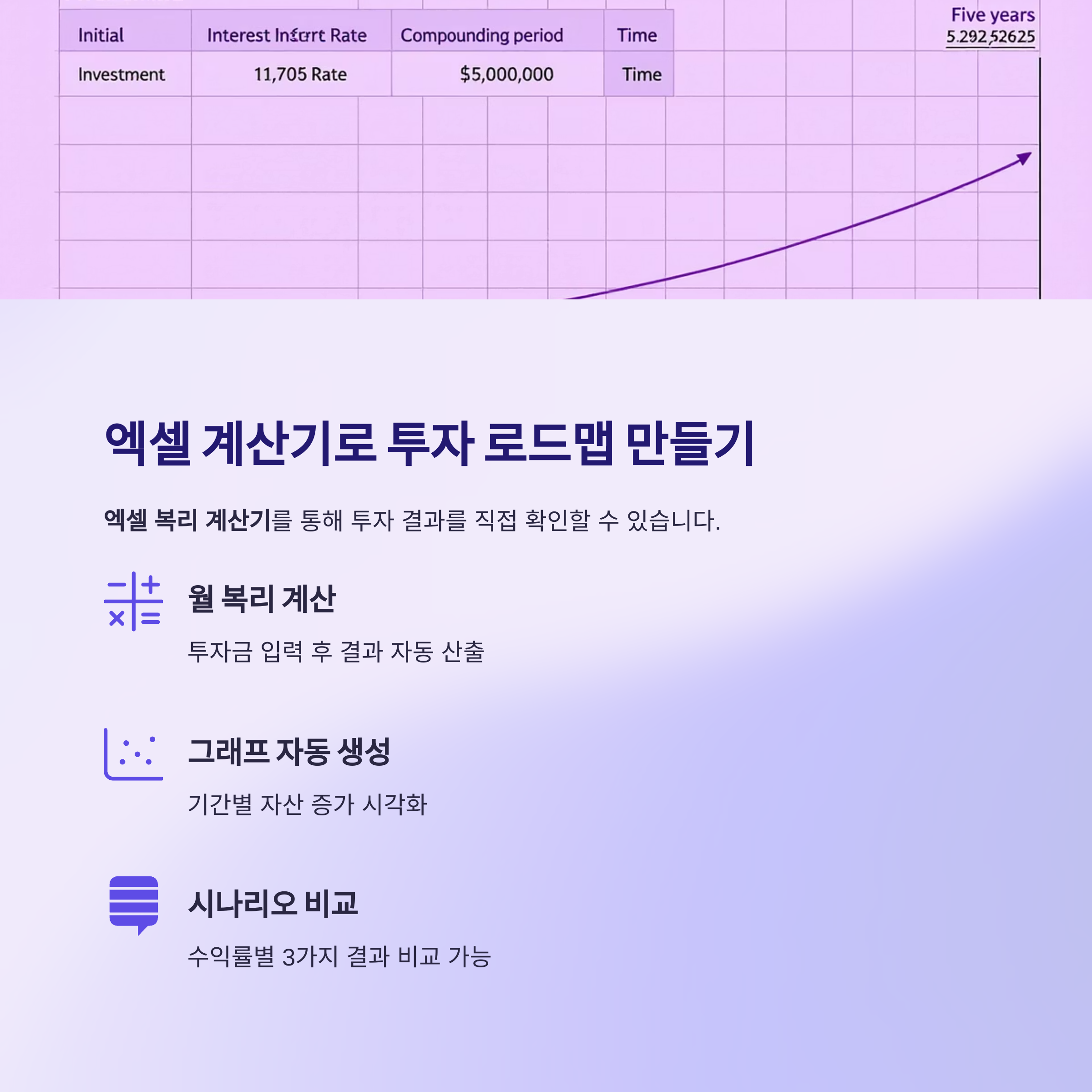 | 시나리오 비교 | 수익률별 3가지 결과 비교 가능 |