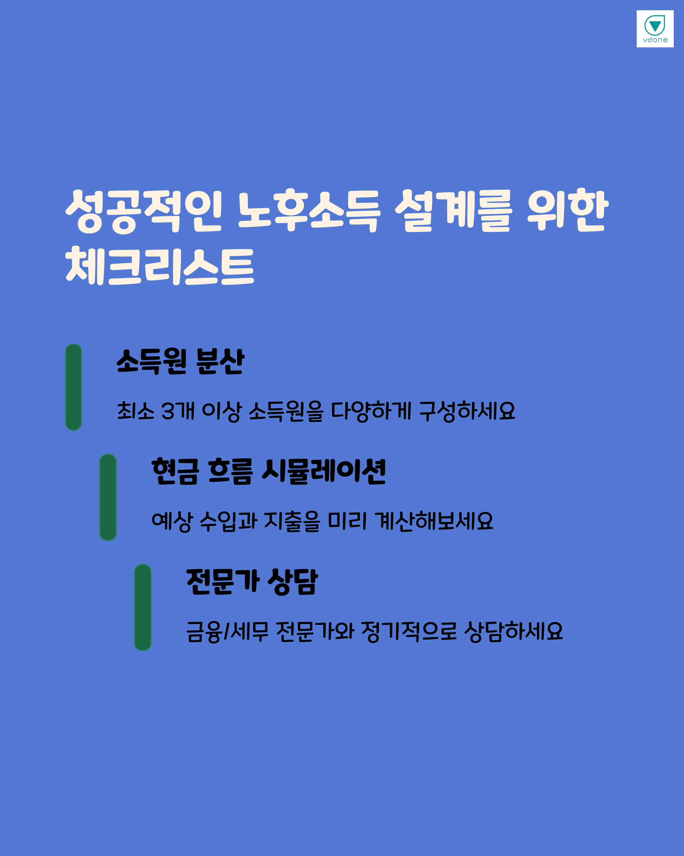 | 노후소득의 정의 | 퇴직 후에도 꾸준히 들어오는 고정적 또는 변동적 수입 |