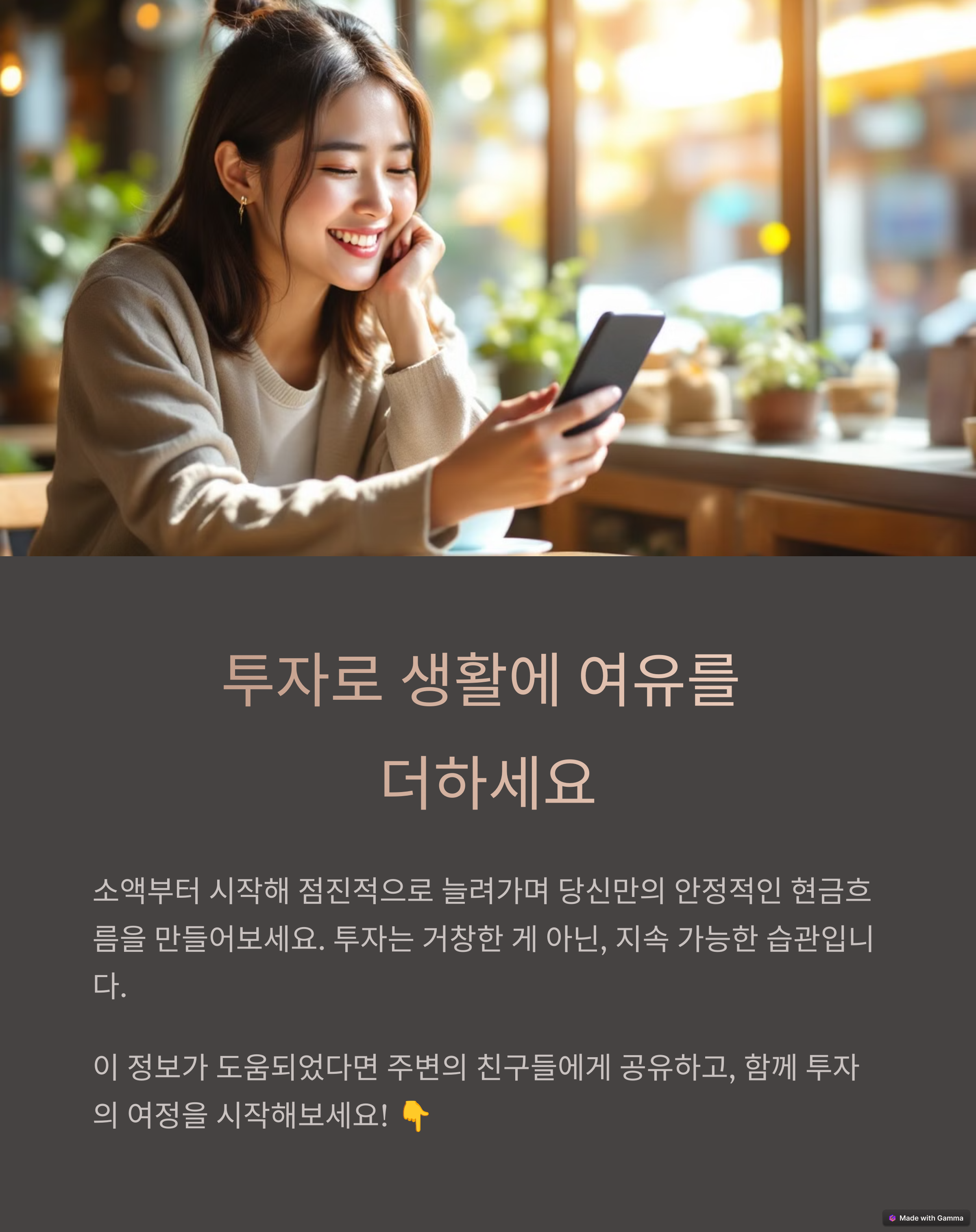 여러분은 어떤 방식으로 매월 수익을 만들고 계신가요? 댓글로 실천 중인 투자 전략이나 고민을 공유해 주세요. 함께 성장하는 재테크 커뮤니티를 만들고 싶어요!