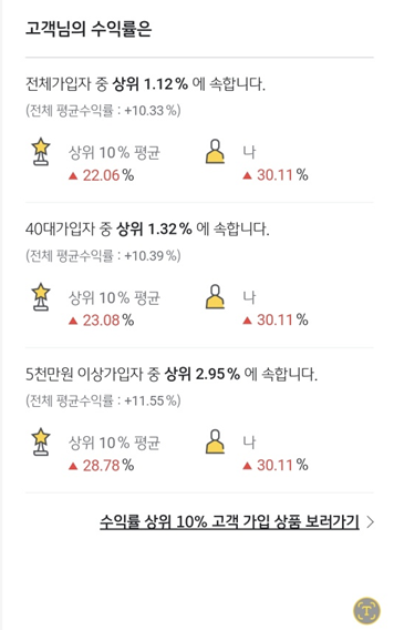수익률은 **30.11%**로, 상위 10% 평균보다도 높습니다! (이미지 참고
