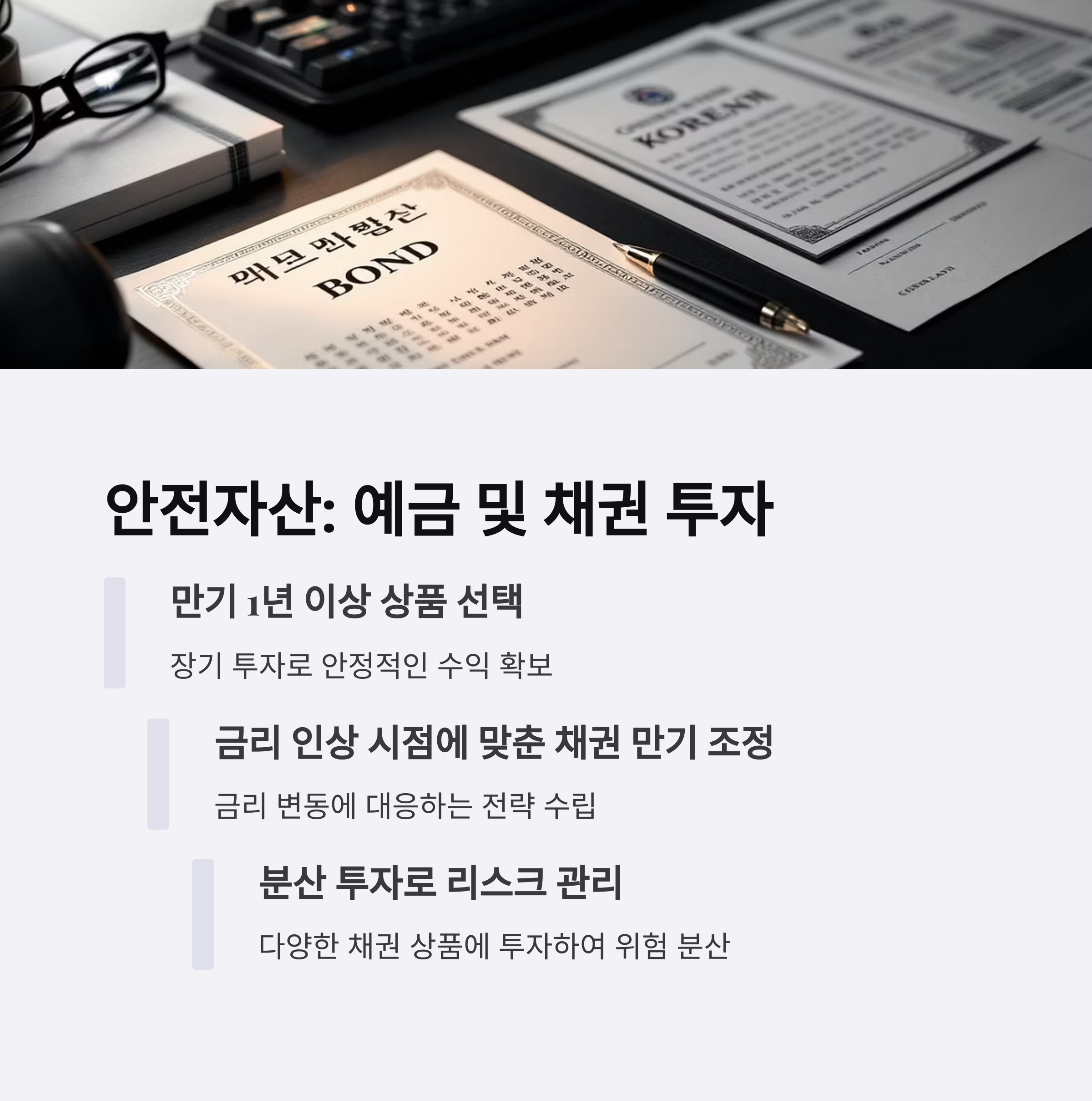 안전자산: 예금 및 채권 투자