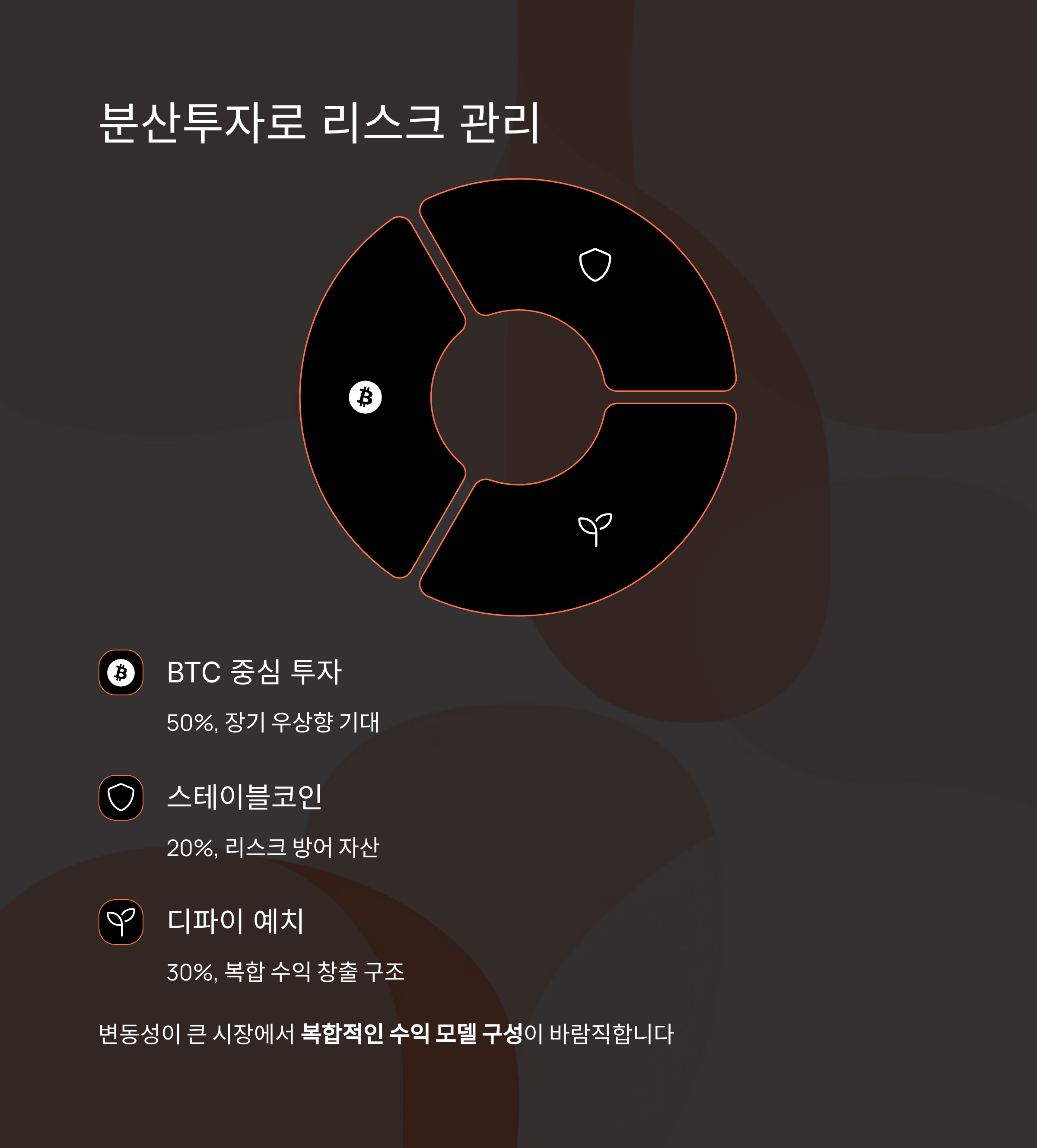 | BTC 중심 투자 | 50% | 장기 우상향 기대 |