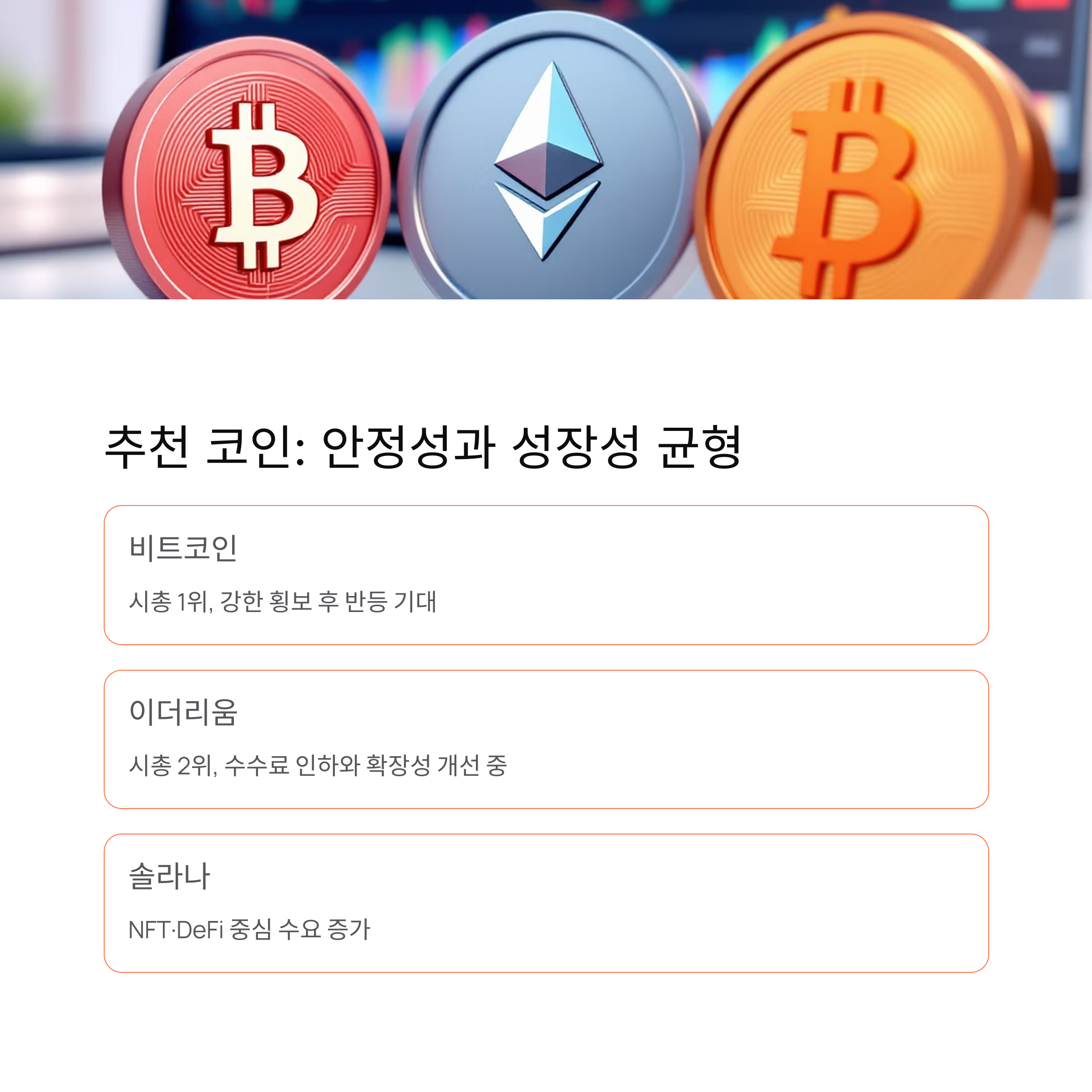 추천 코인군: 비트코인 중심, 이더리움·솔라나까지