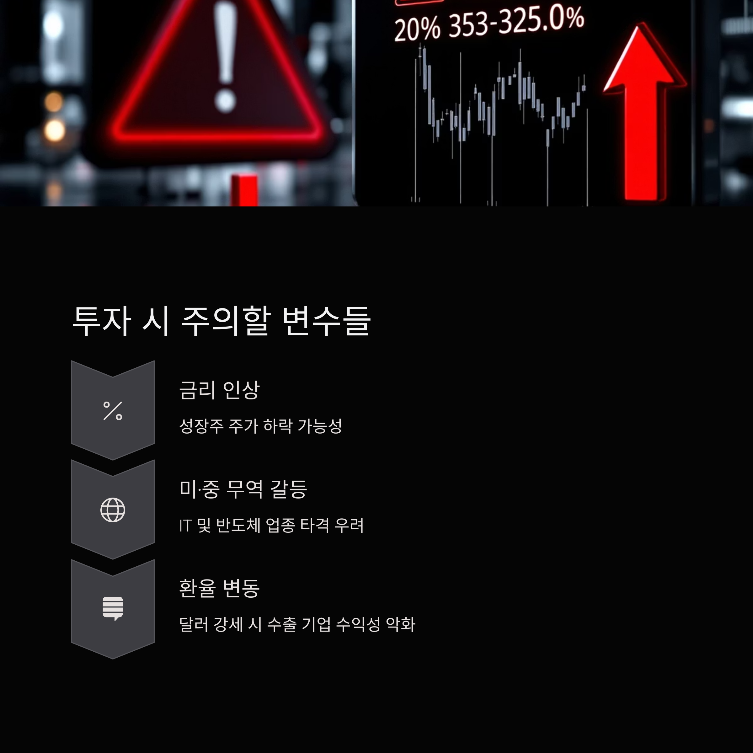 - 미·중 무역 갈등: 무역 분쟁이 심화되면 IT 및 반도체 업종에 타격 가능성