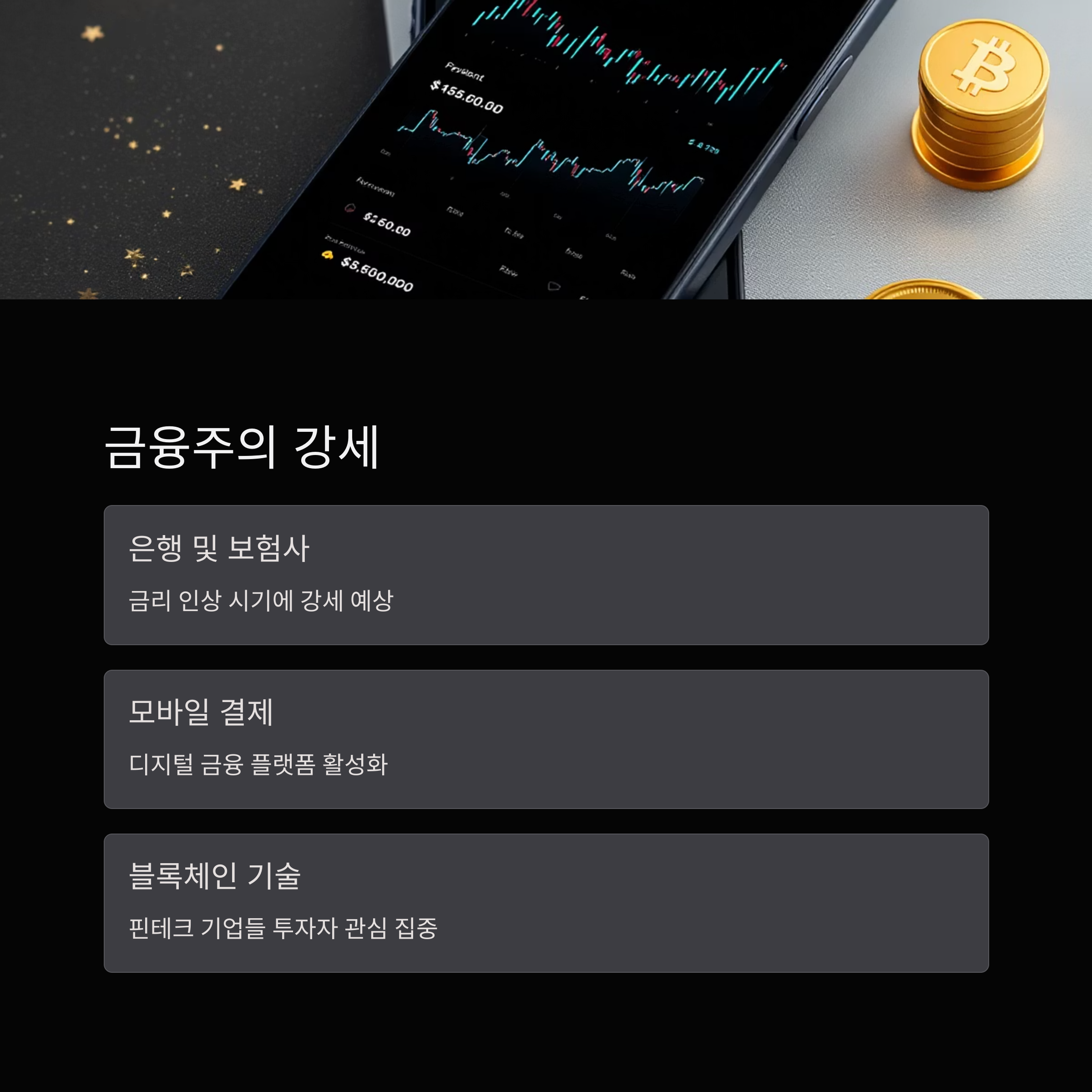 금리 인상 시기에는 금융주가 강세를 보일 가능성이 높습니다.