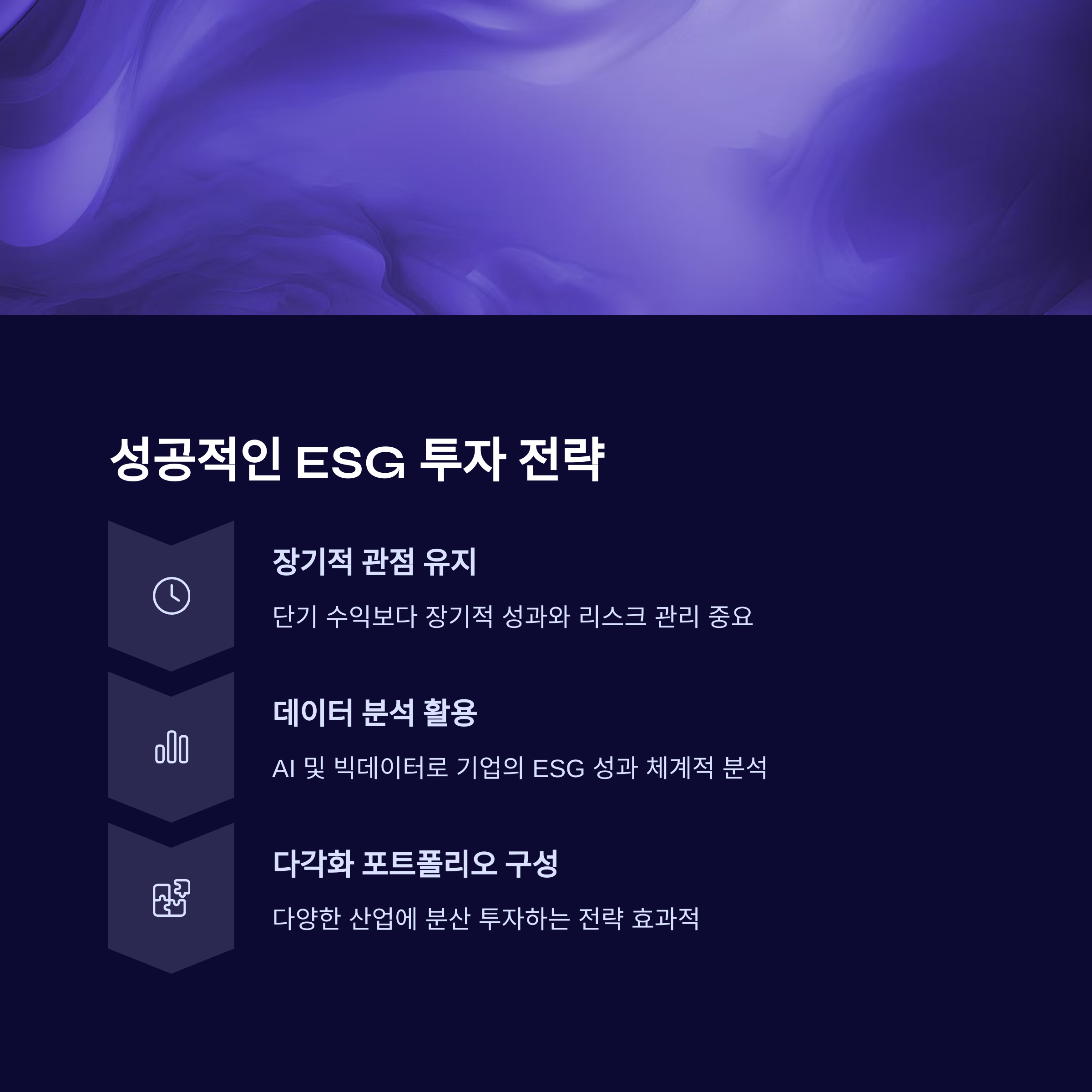 - 장기적 관점 유지: ESG 투자는 단기 수익보다는 장기적 성과와 리스크 관리가 중요합니다.