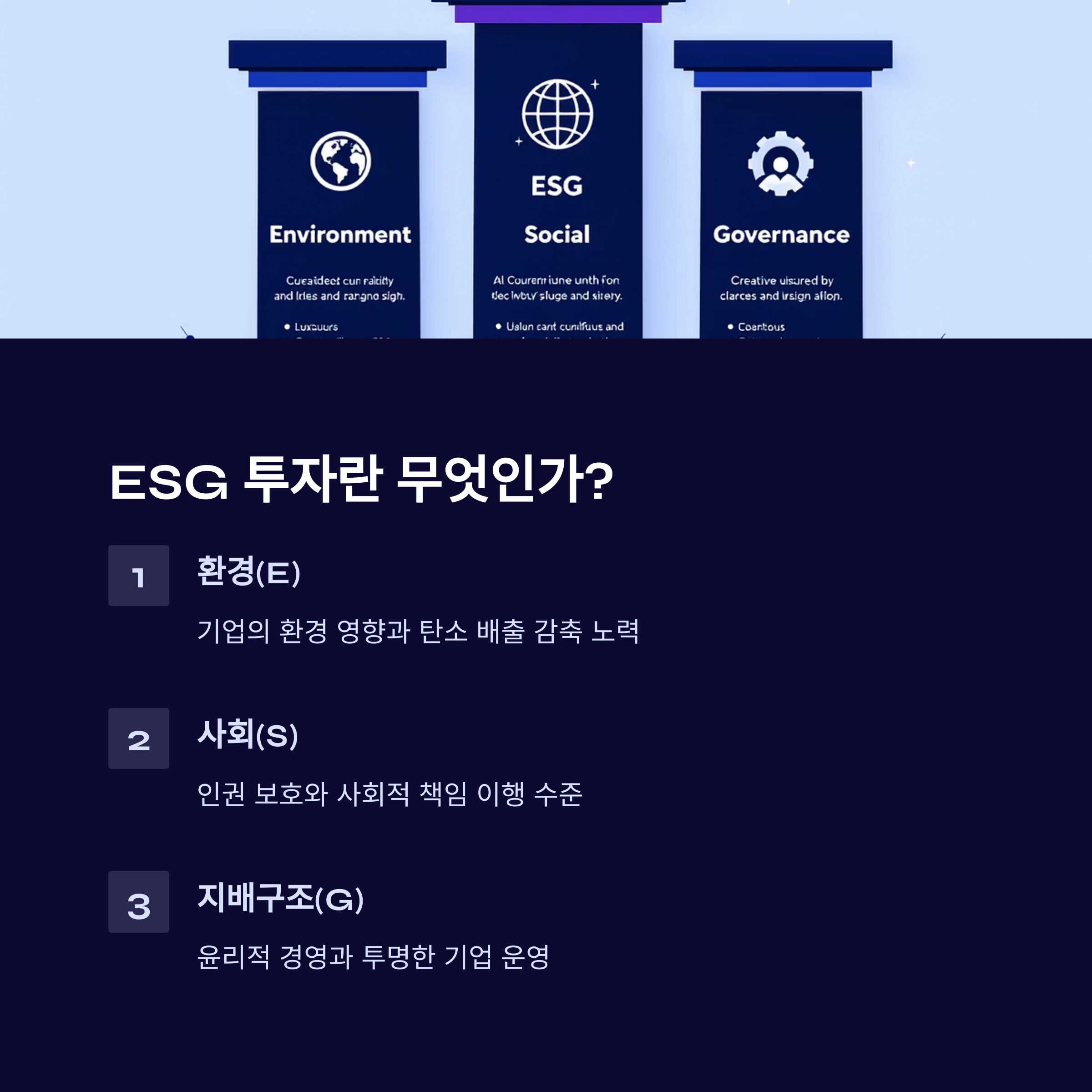ESG 투자는 환경, 사회적 책임, 기업 지배구조를 평가하는 투자 전략입니다.