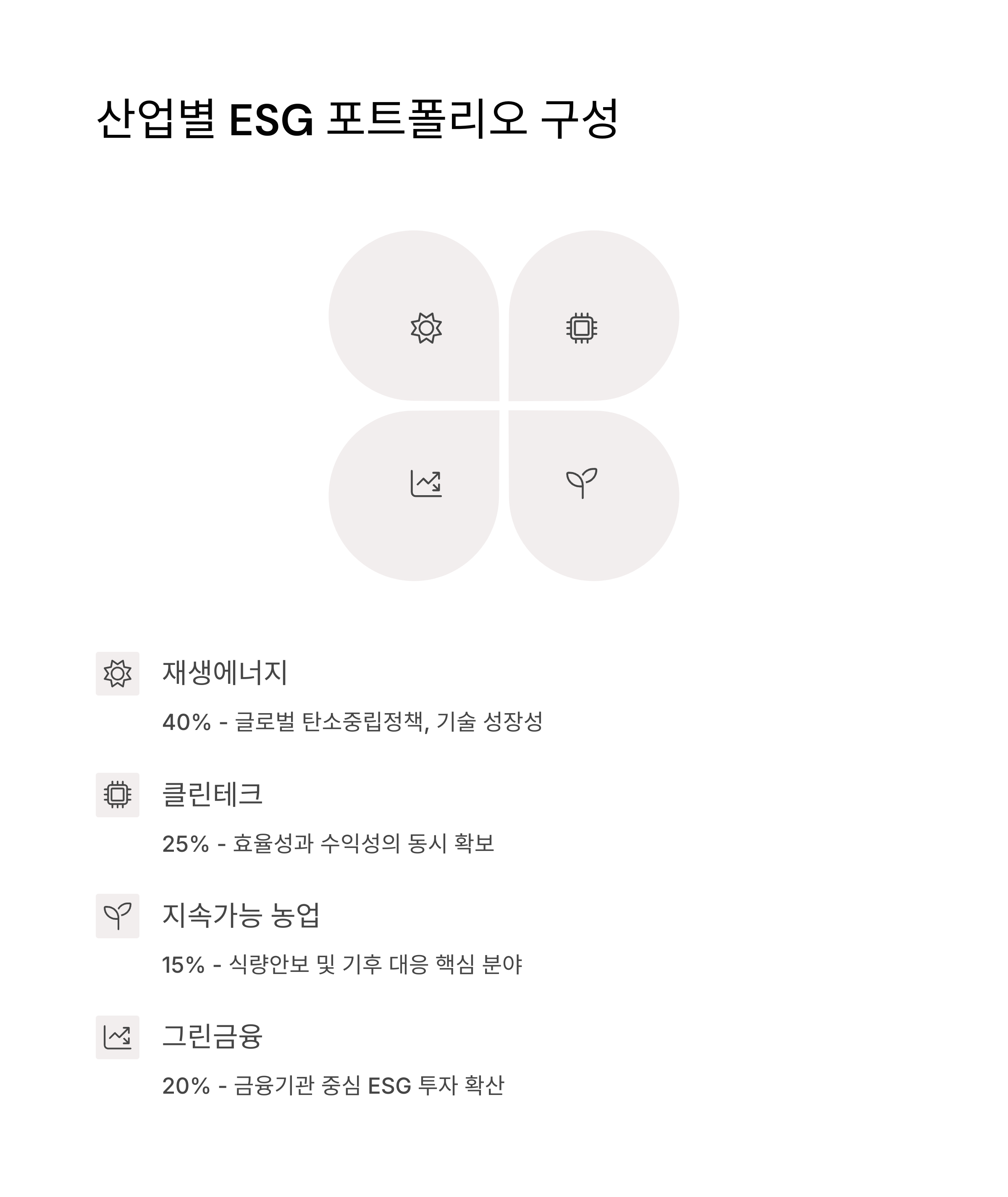 산업별 ESG 포트폴리오 구성은 다음과 같이 제안됩니다