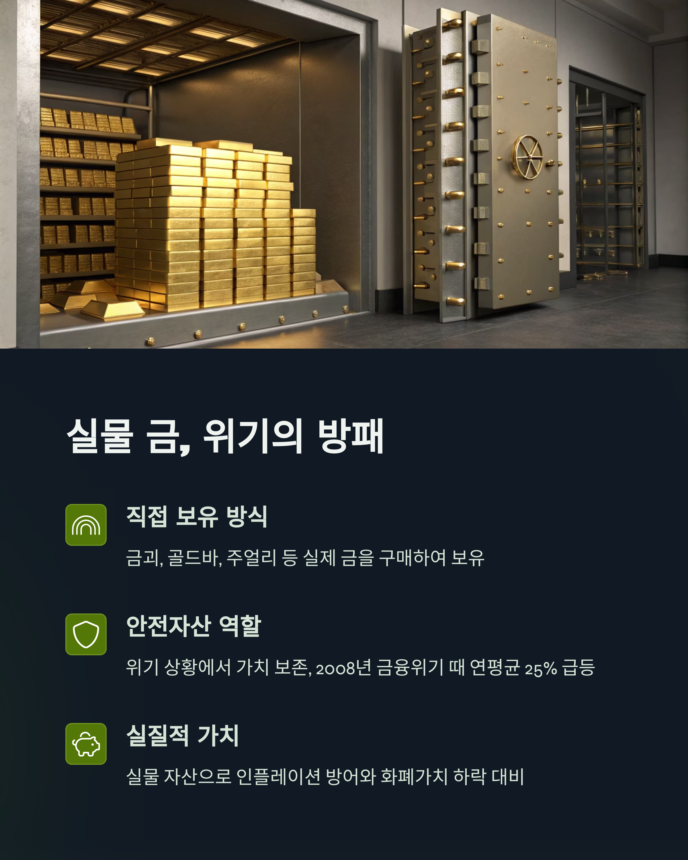 | ETF와 실물 비교 | 보관의 편의성은 ETF, 실물은 위기 시 강력한 방어 수단 |