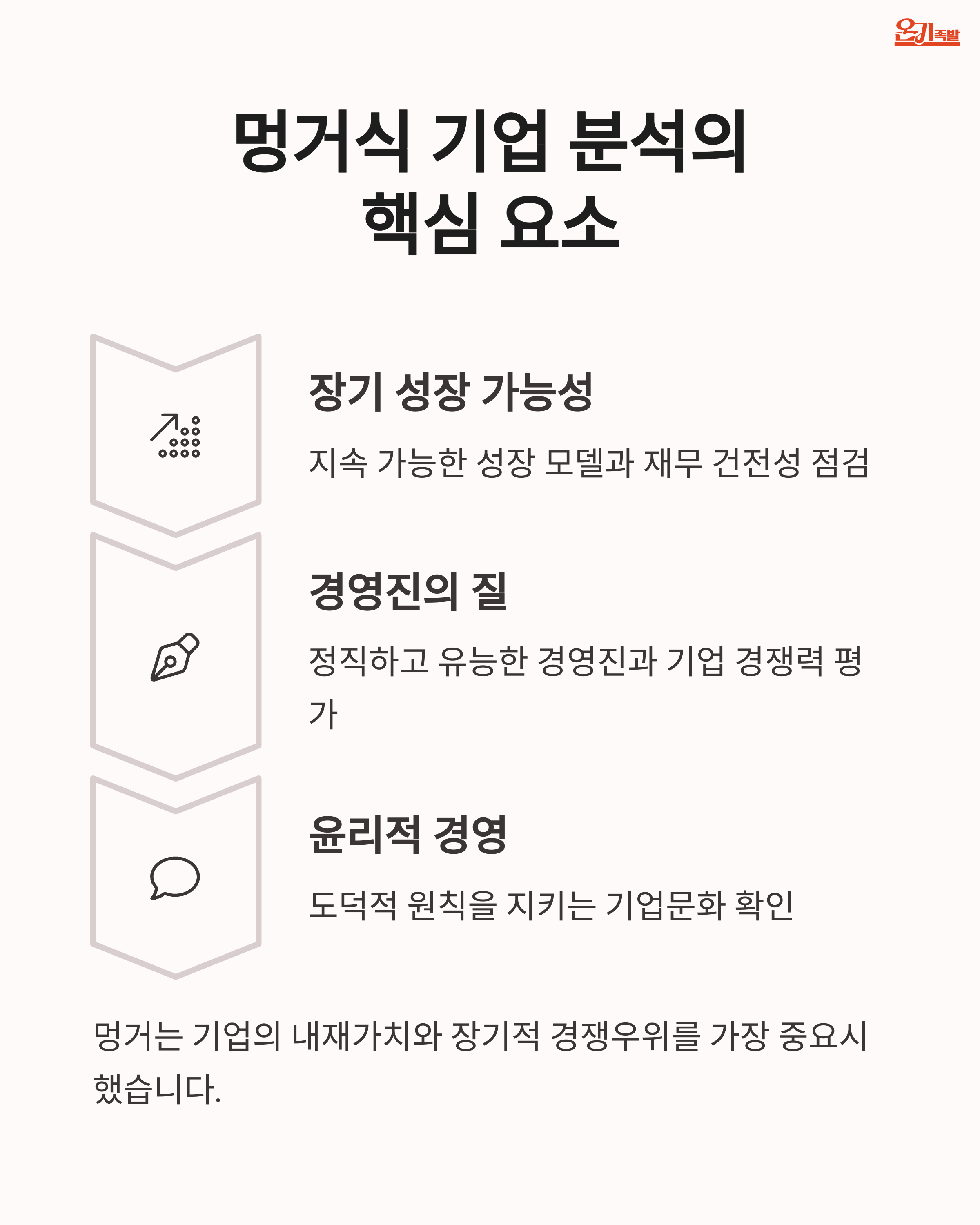 둘째, 경영진의 도덕성과 장기적 사고방식을 평가해야 합니다.