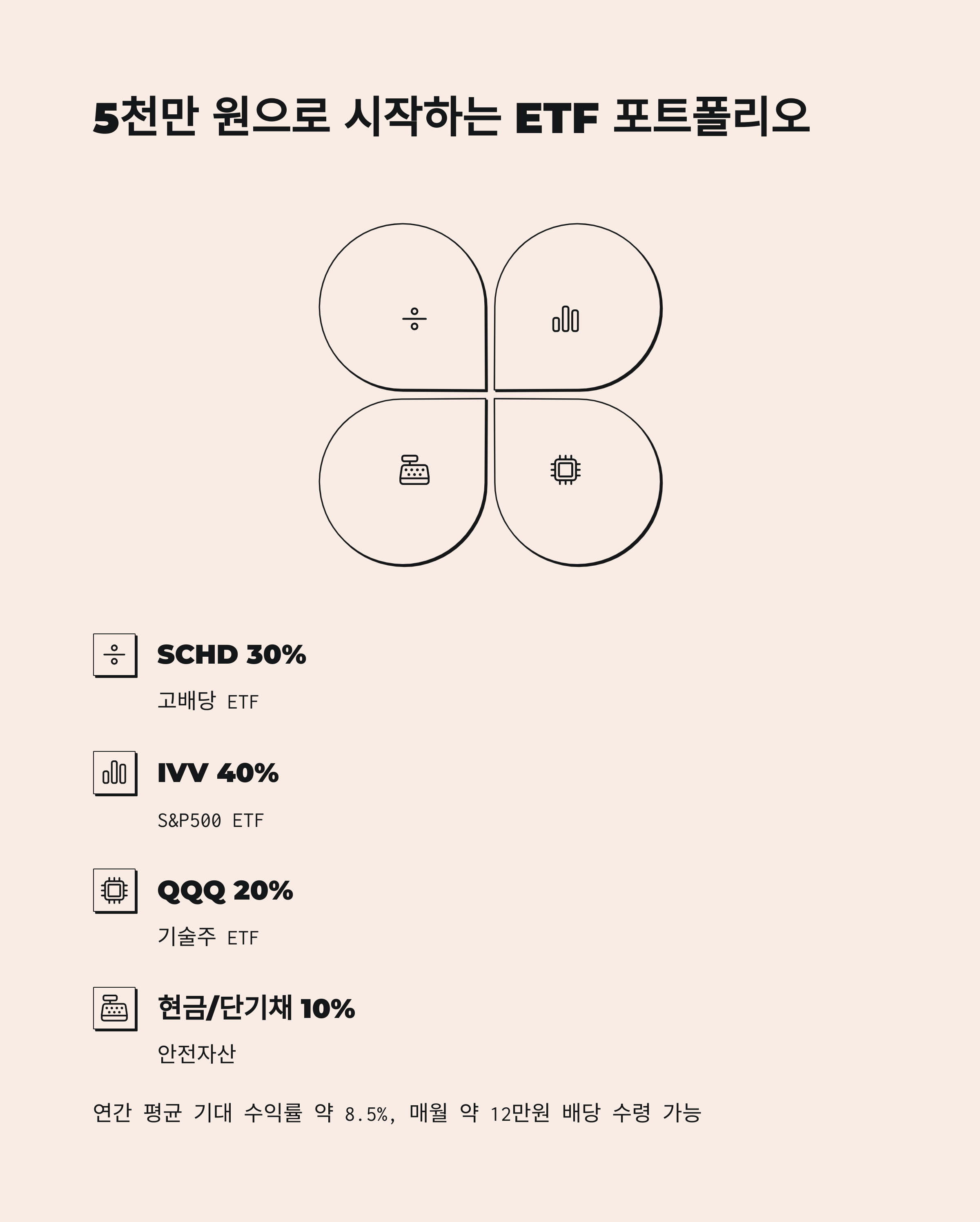 💡 예: 매월 약 12만 원 배당 수령 가능 (ETF 비중에 따라 차이 있음)