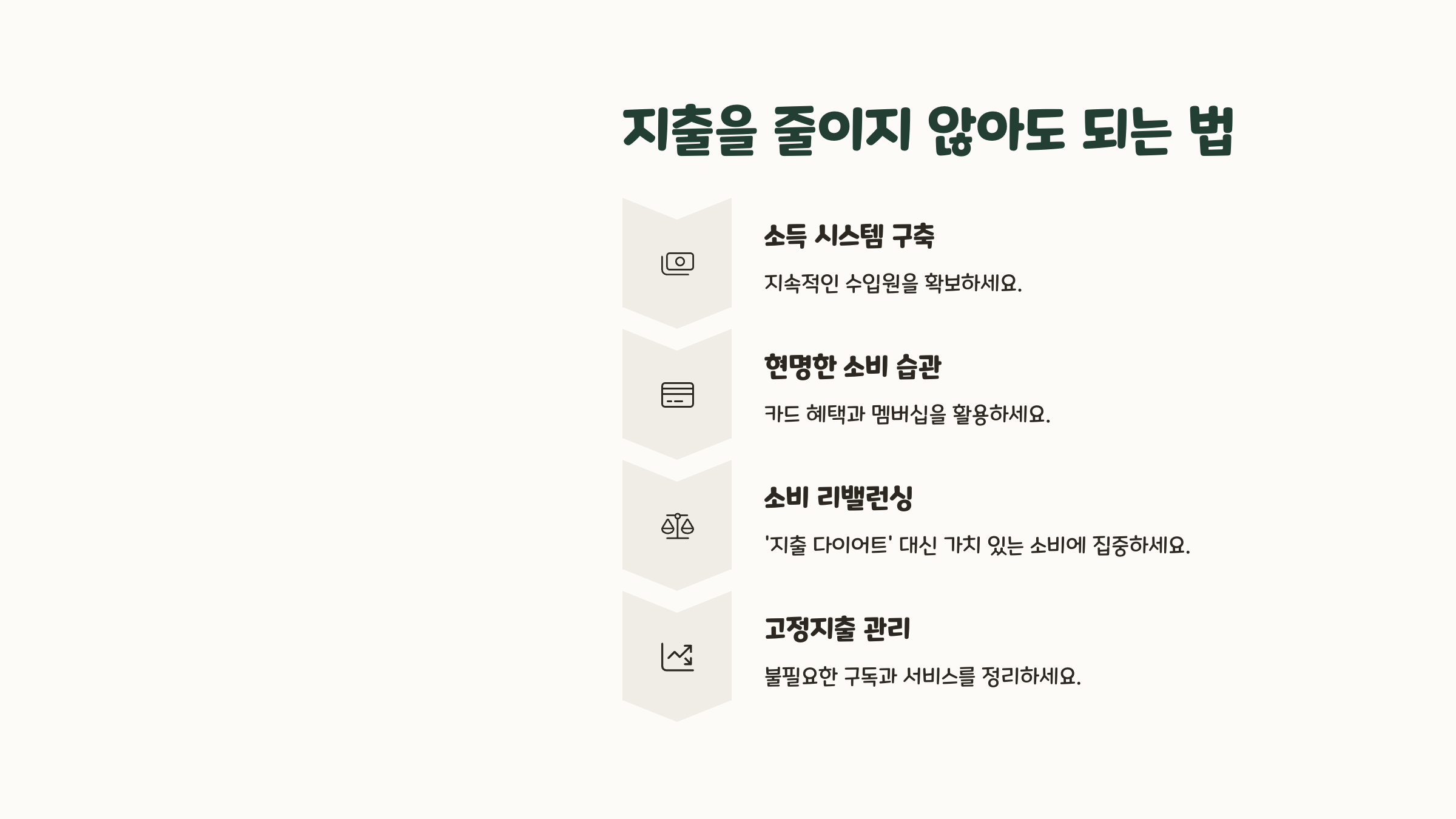 불필요한 정기 구독, 카드 수수료, 에너지 낭비 등을 없애는 것만으로도 큰 효과가 납니다.