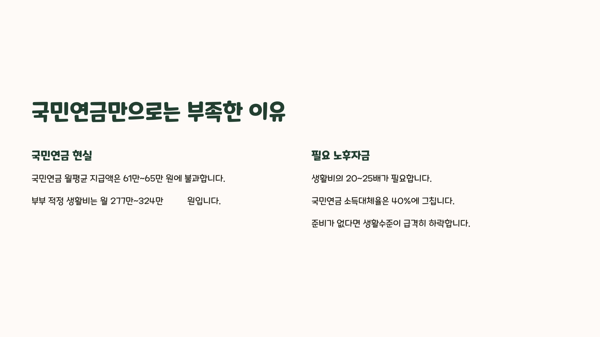 "연금만으로는 안정된 삶이 어렵다"는 게 현실입니다.