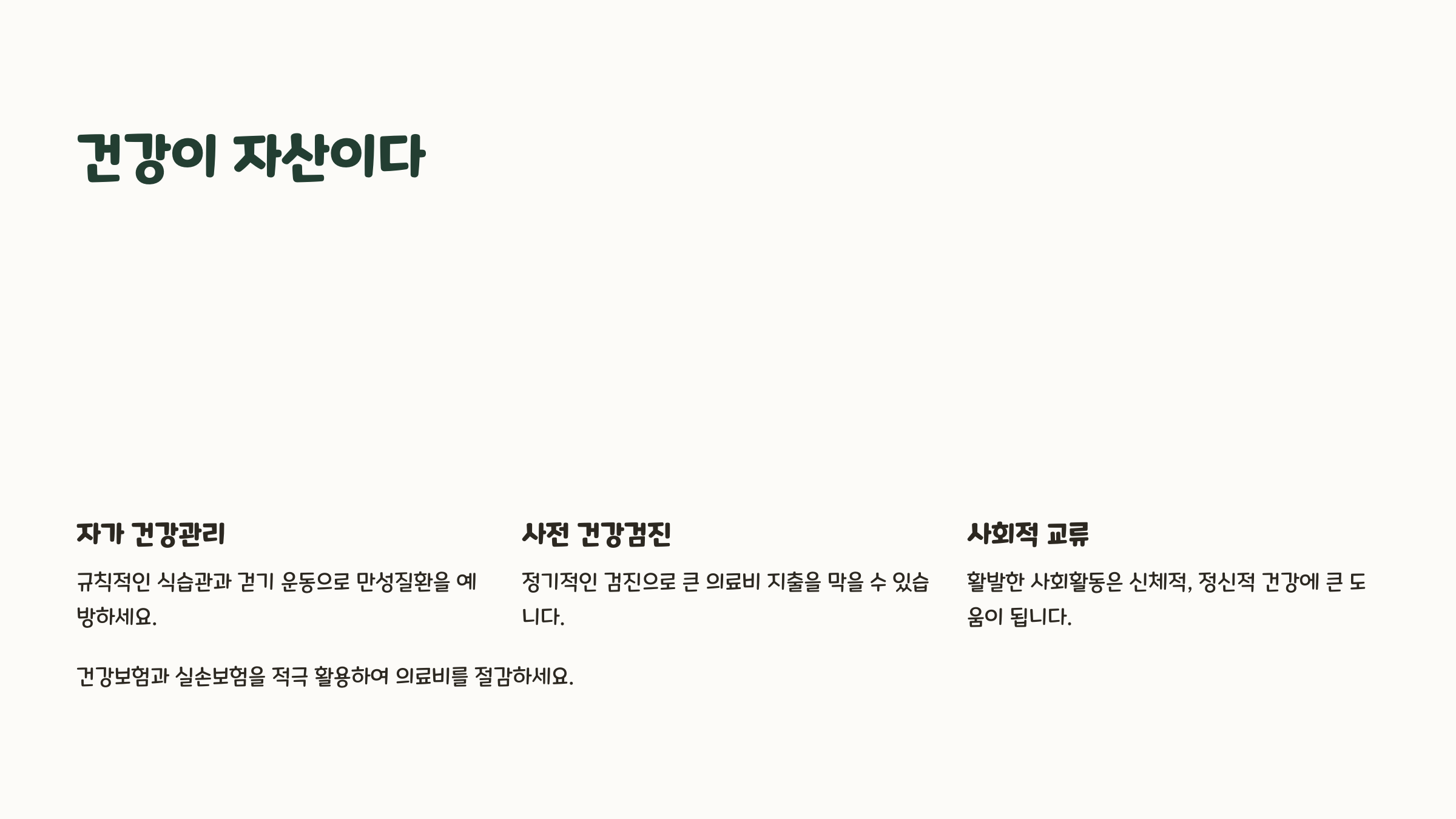 하지만 규칙적인 운동, 정기 검진, 식단 조절로 건강을 유지하면 병원비는 놀라울 정도로 줄어듭니다.