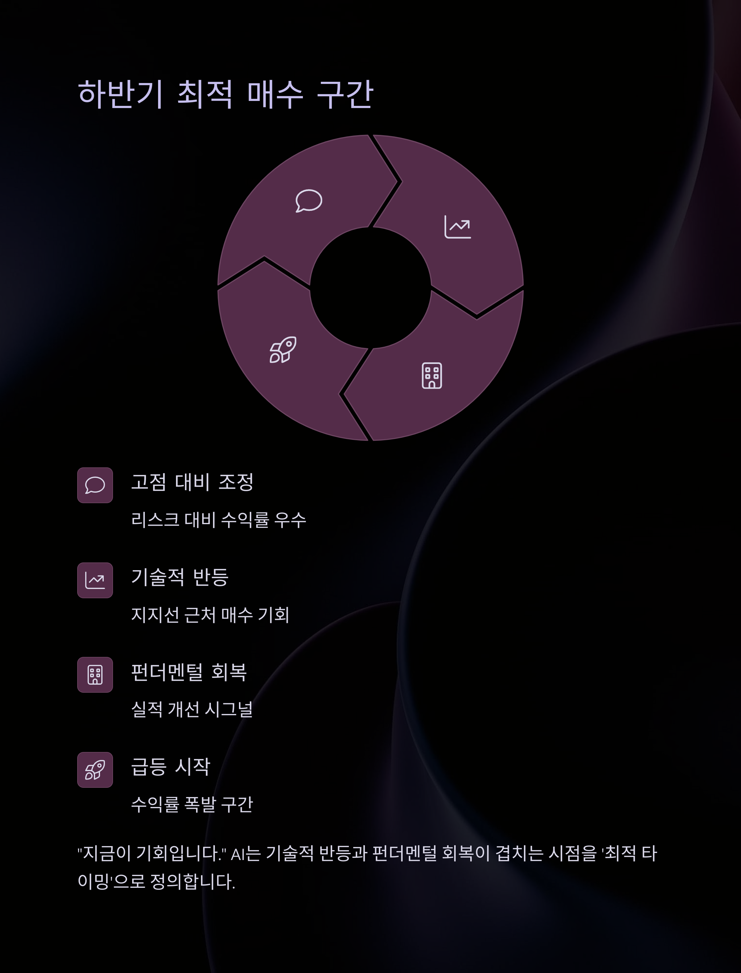 AI는 기술적 반등과 펀더멘털 회복이 겹치는 시점을 '최적 타이밍'이라 정의합니다.
