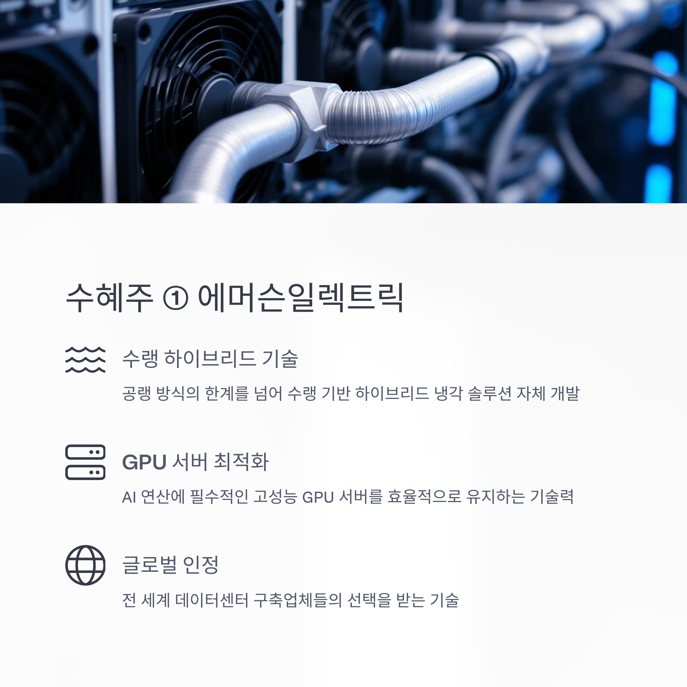 | 수랭 효율 | 전기료 절감의 핵심 | GPU·CPU 서버 냉각 |