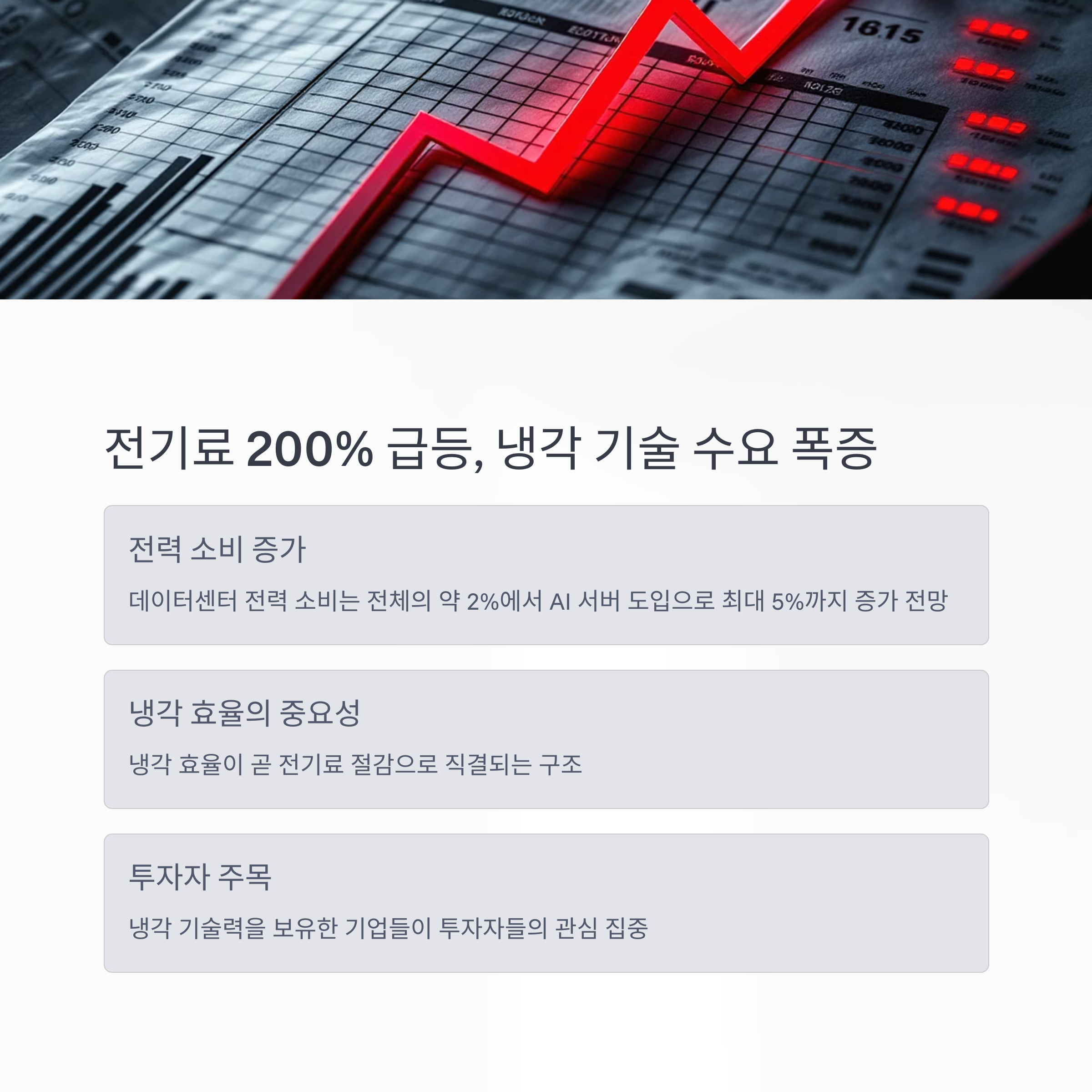 1. 전기료 200% 급등… 냉각 기술 수요는 기하급수적으로 증가