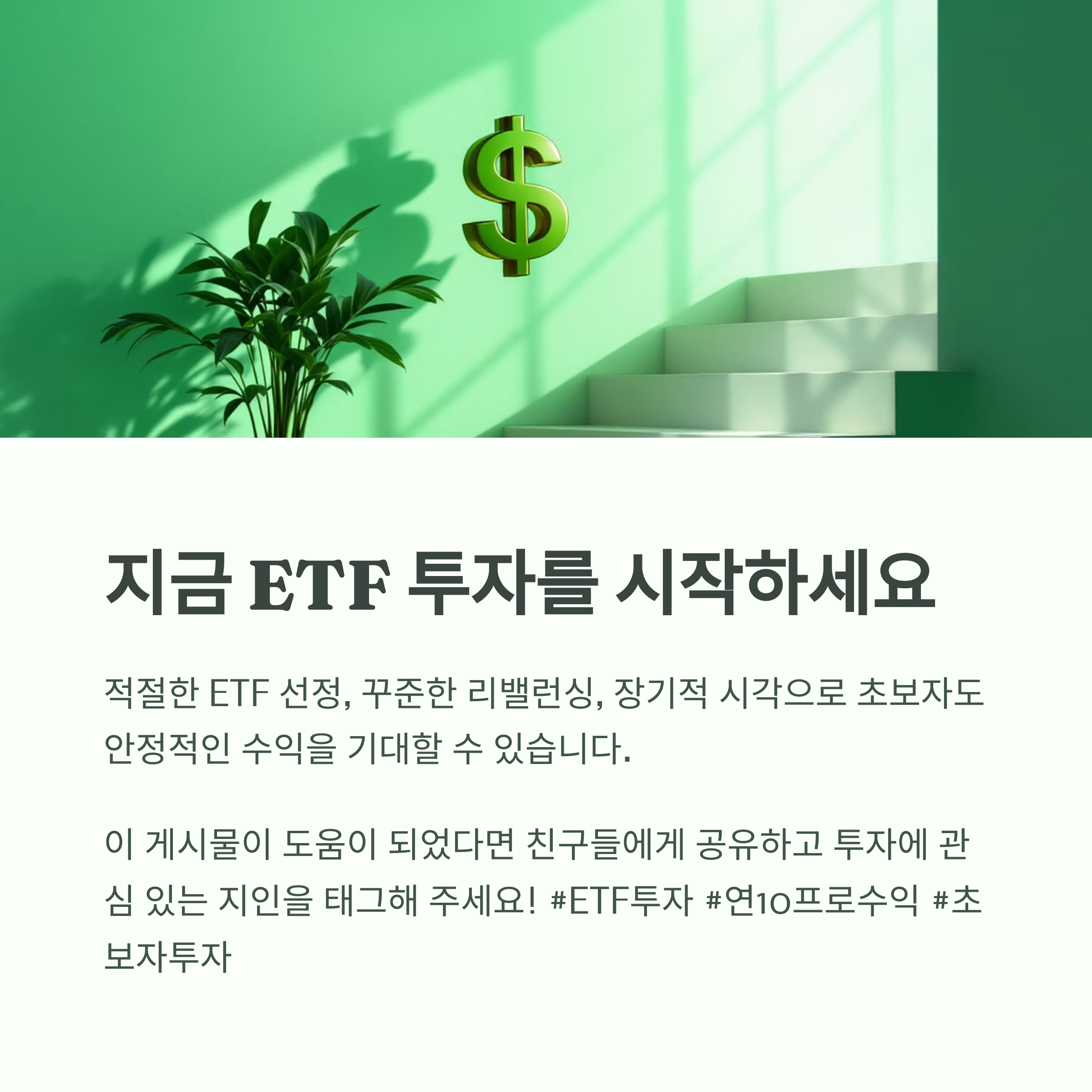 ETF 투자로 연 10% 수익을 달성하기 위해서는 적절한 ETF 선정, 꾸준한 리밸런싱, 장기적 시각이 필수적입니다.