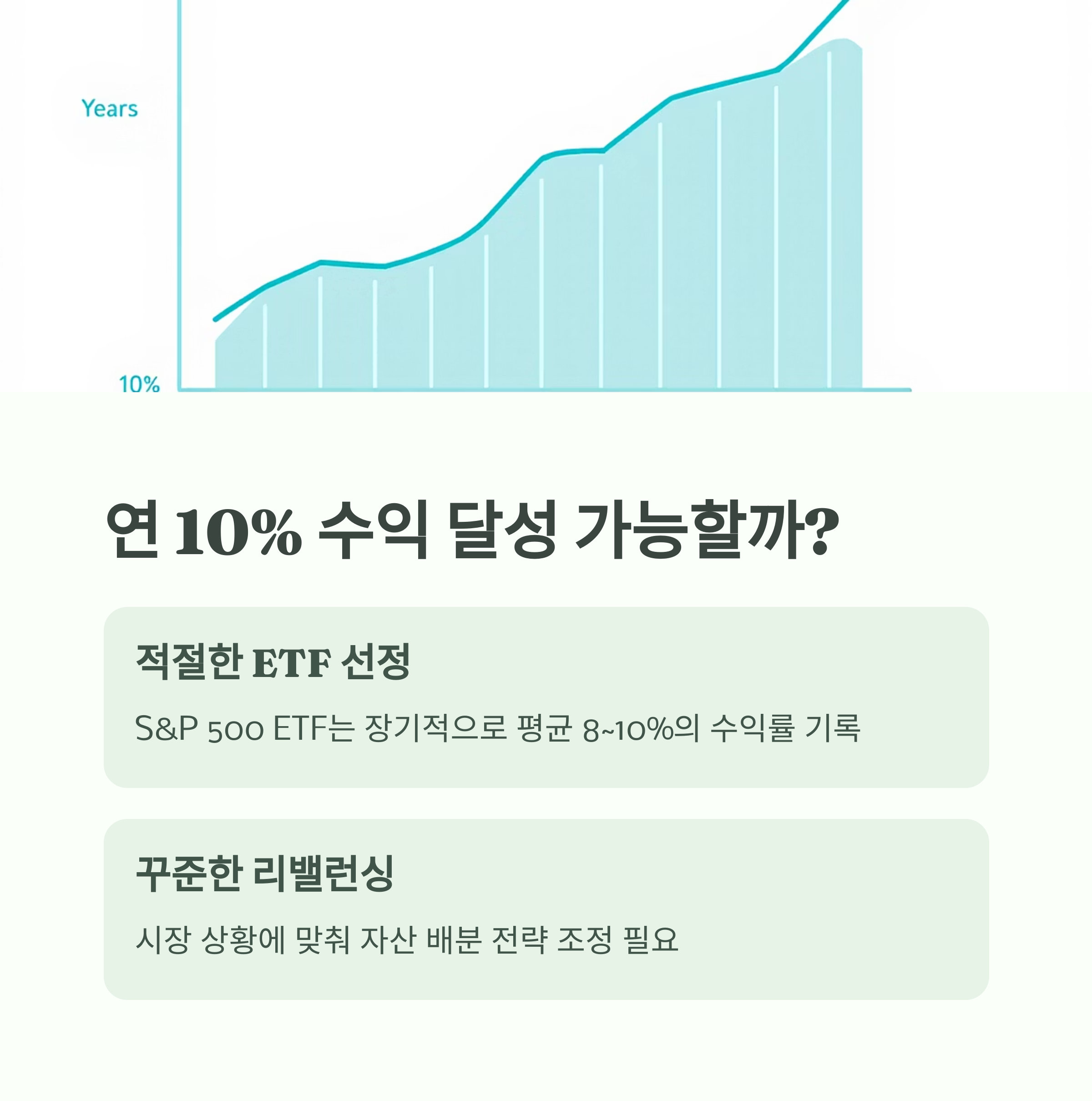 연 10% 수익을 목표로 한다면, 적절한 ETF 선정과 꾸준한 리밸런싱이 필수적입니다.