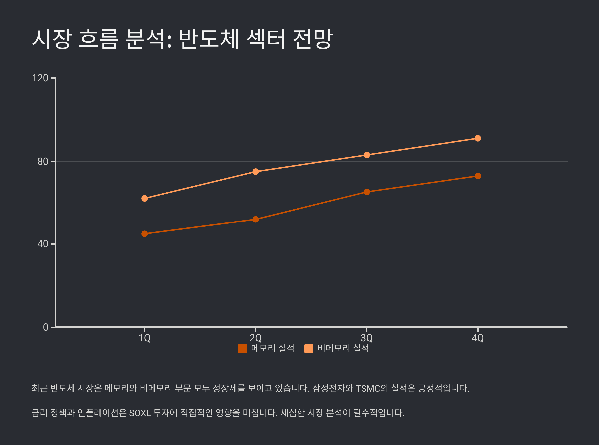 SOXL은 반도체 종목을 3배 추종하는 ETF입니다. | 금리 흐름, 반도체 업황에 따라 시기를 판단해야 합니다. | 손절 기준 설정과 분할 매수 전략이 필요합니다. |