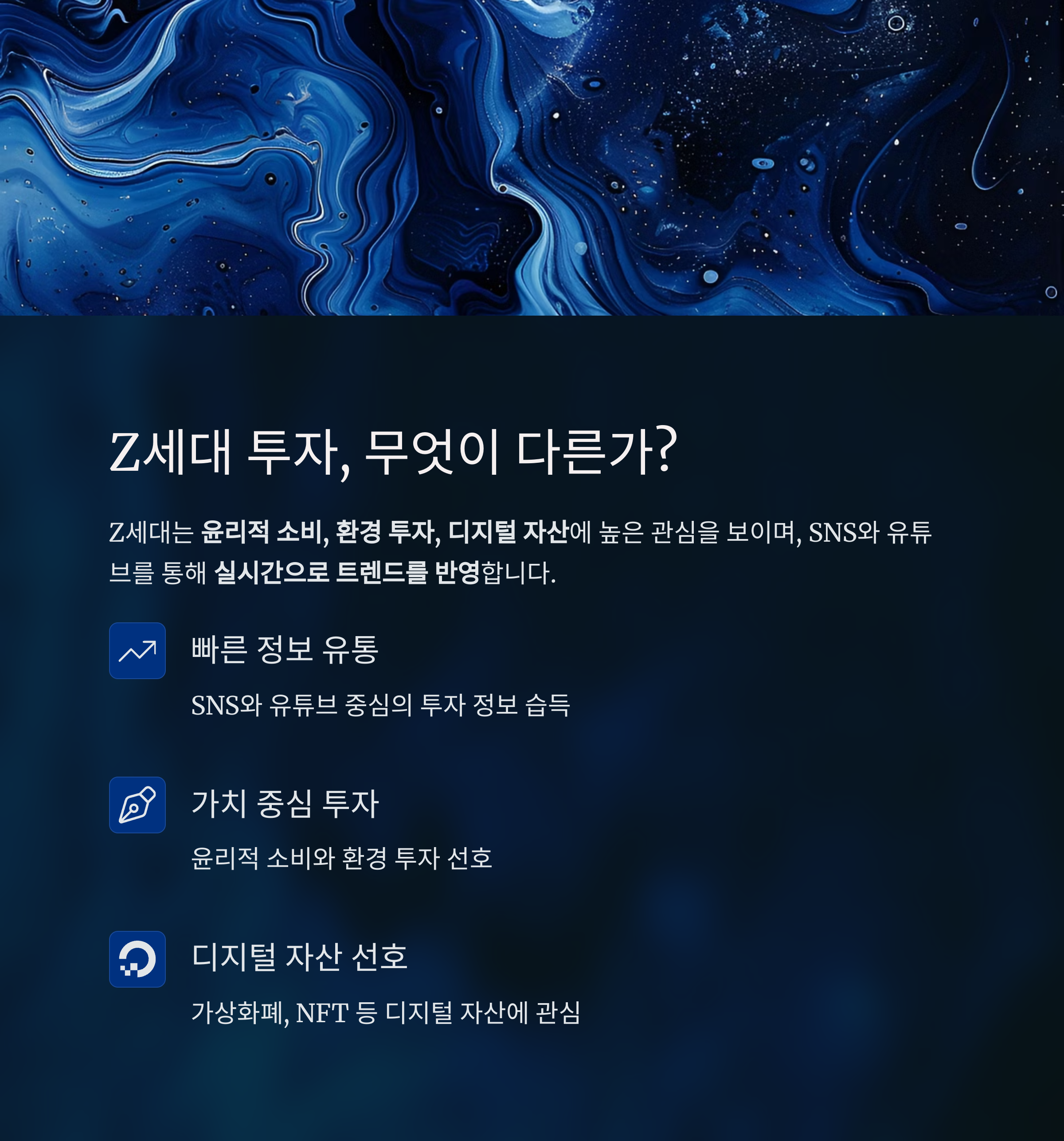 Z세대는 기존 세대와는 다른 가치관과 소비 패턴을 바탕으로 투자 방식에서도 새로운 흐름을 만들고 있습니다.